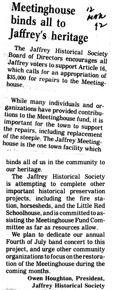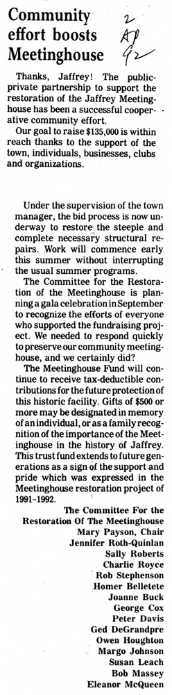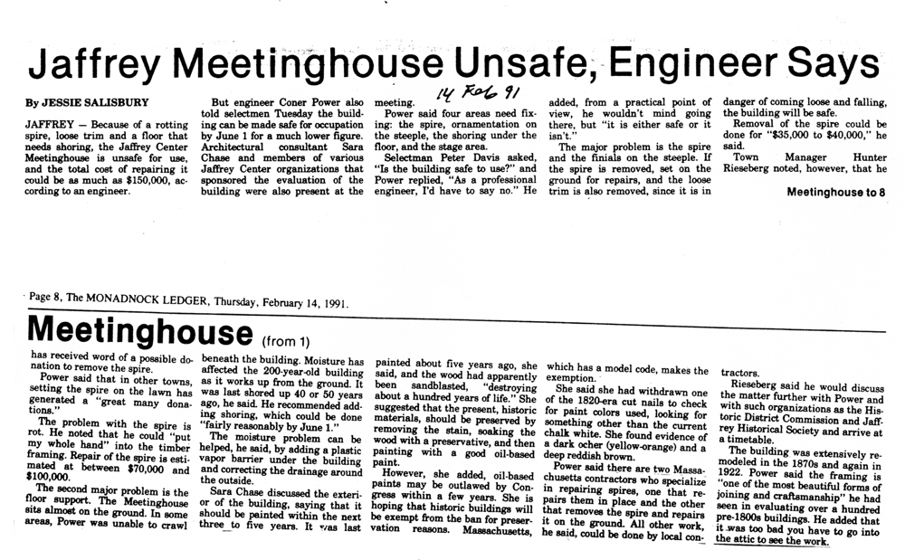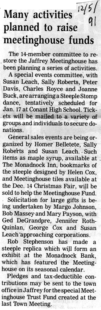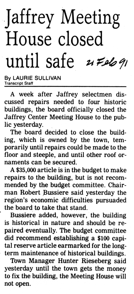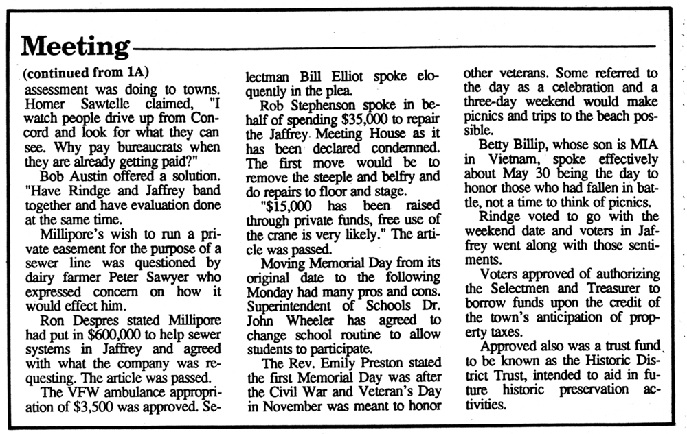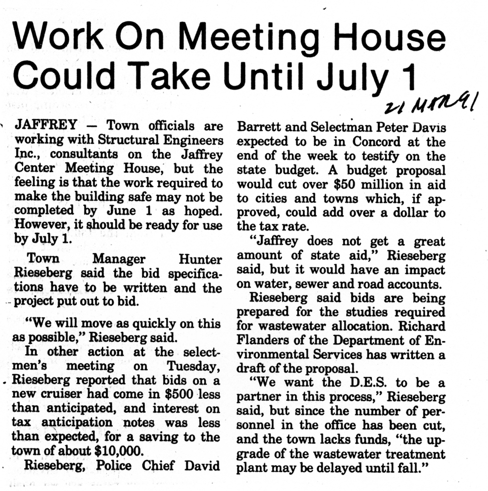 Jaffrey Rindge Chronicle. March 20, 1991. Pages 1-2.