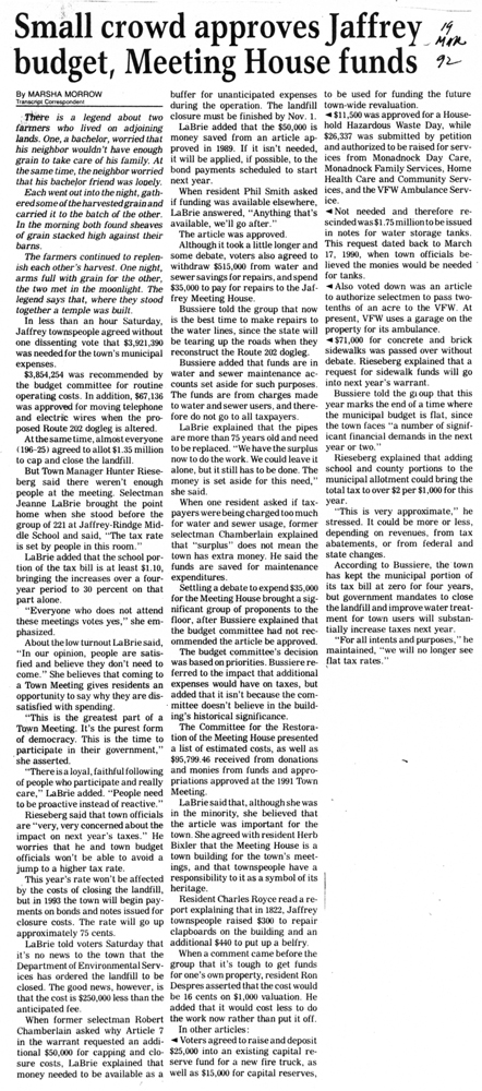 Peterborough Transcript. March 19, 1992.