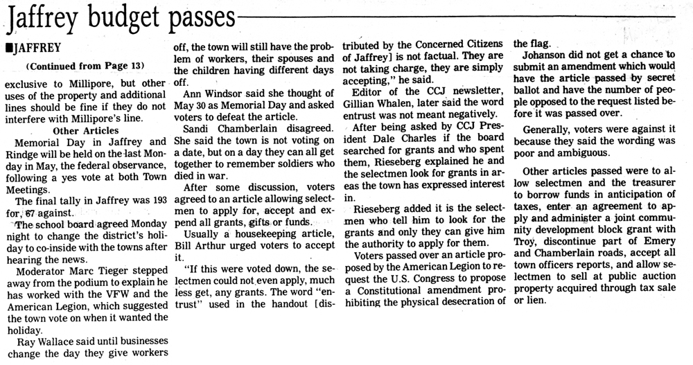 Keene Sentinel. June 30, 1993.