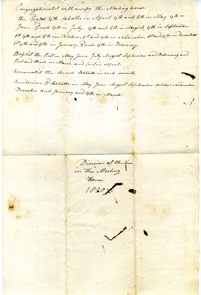 These documents relate to the division of the Meetinghouse between the various denominations.
