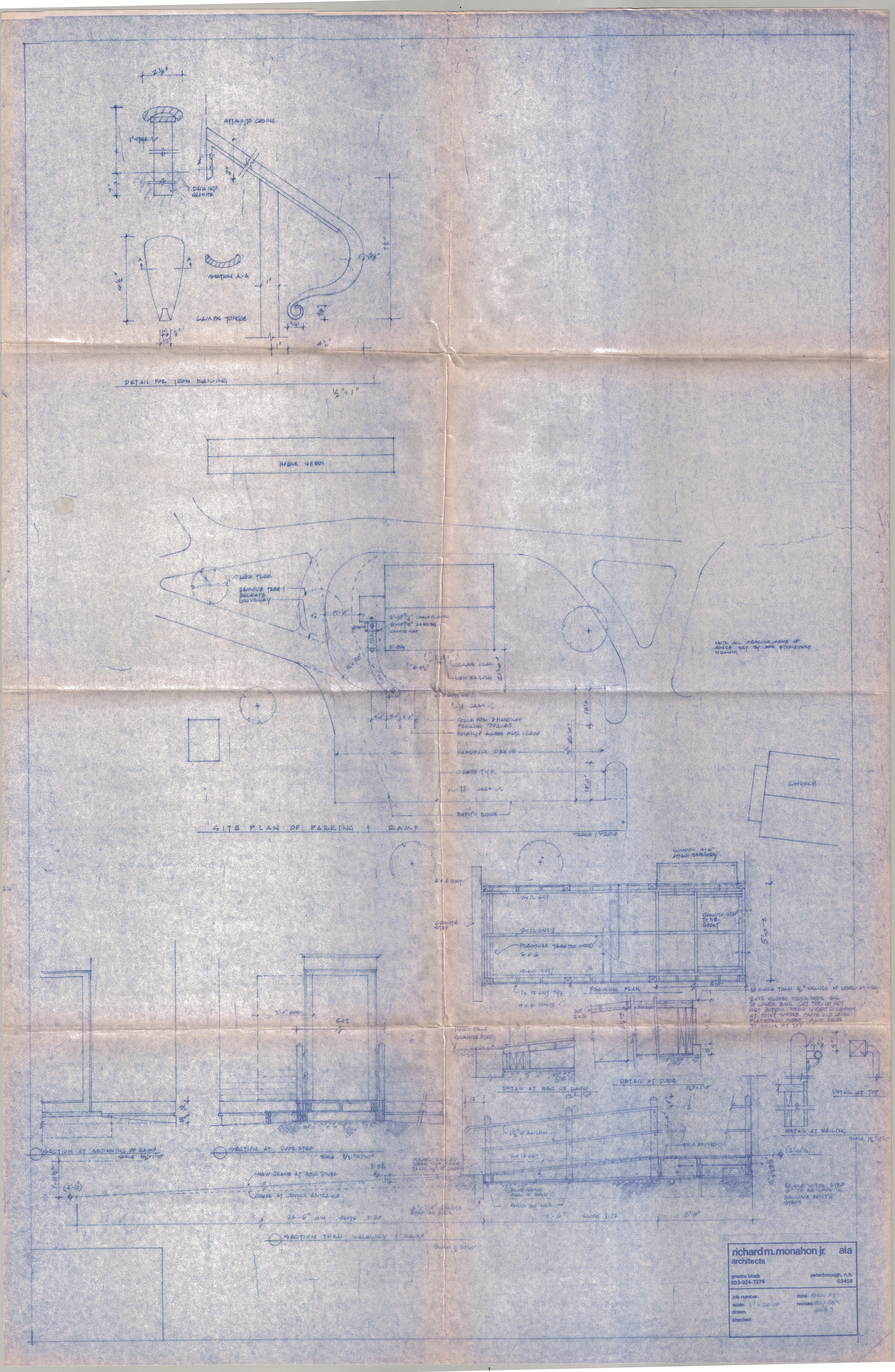 One sheet of plans and details related to the handicap ramp to the Tower entry, Richard M. Monahon, Jr., architects, Revised June 7, no year given. Ca. 1993.