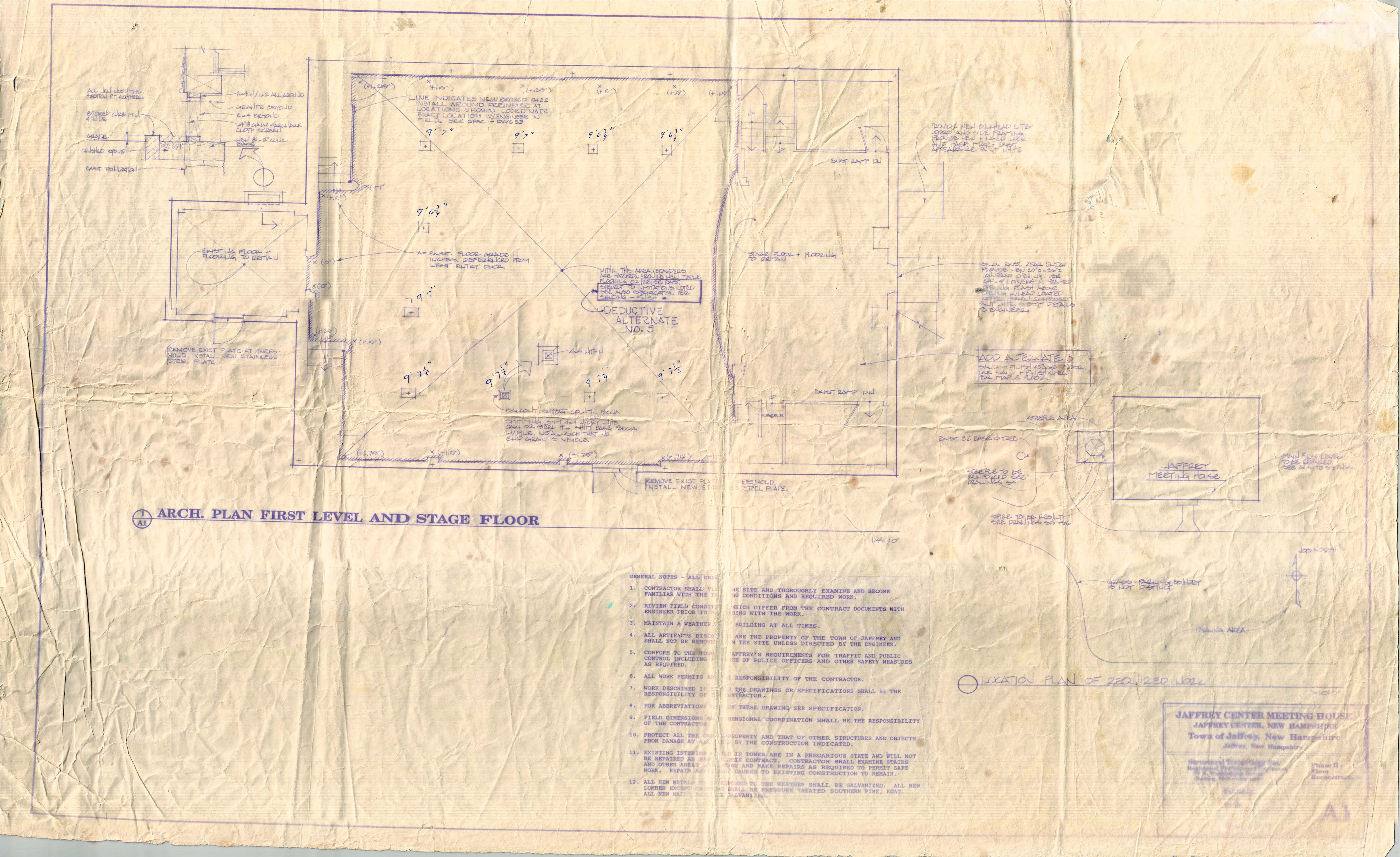 One sheet of plans: Architectural Plan First Level and Stage Floor, Phase II Floor Reconstruction, Drawing A1, Structural Technology, Inc. Date unreadable. Ca. 1993.