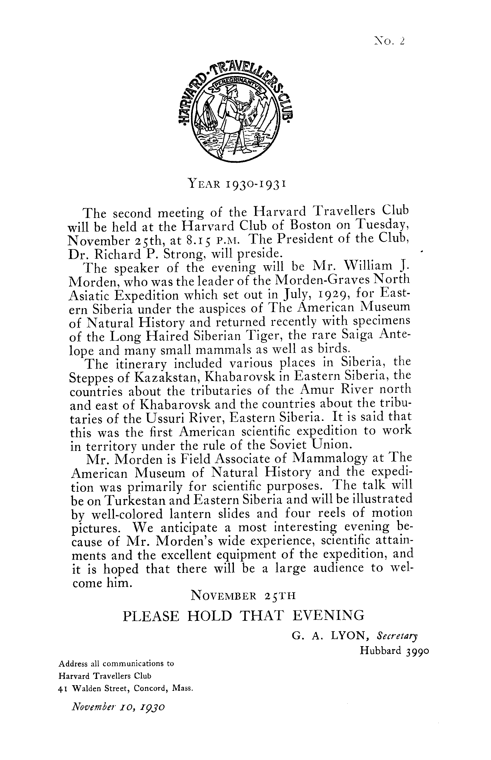 HARVARD TRAVELLERS CLUB ARCHIVES