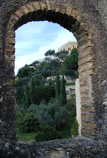 An arch from the garden terrace. Marco and Angelina's villa above.