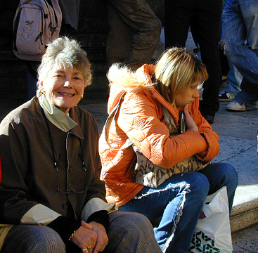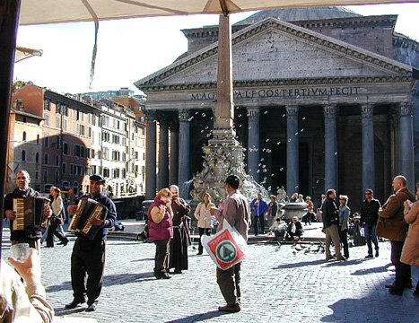 On Monday Conrad, Duffy, Krista and Rob went into Rome. Here we are eating lunch at a cafe looking out at the Pantheon. Although sunny, it was a cold, windy day. Here Conrad sits next to the saddest looking girl in Rome.
