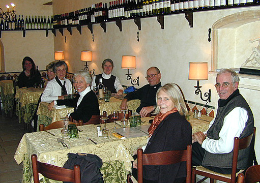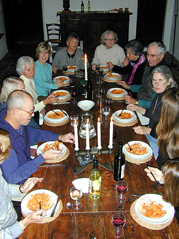 The first of three dinners prepared by Maria and Enrico. Clockwise from left: Nancy, Peter, Duffy, Cyn, Suzan, Conrad, Jinnie, Mary, Ray, Sheila, Krista and Claire.