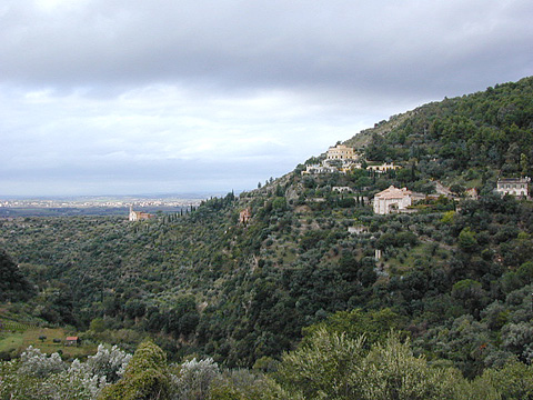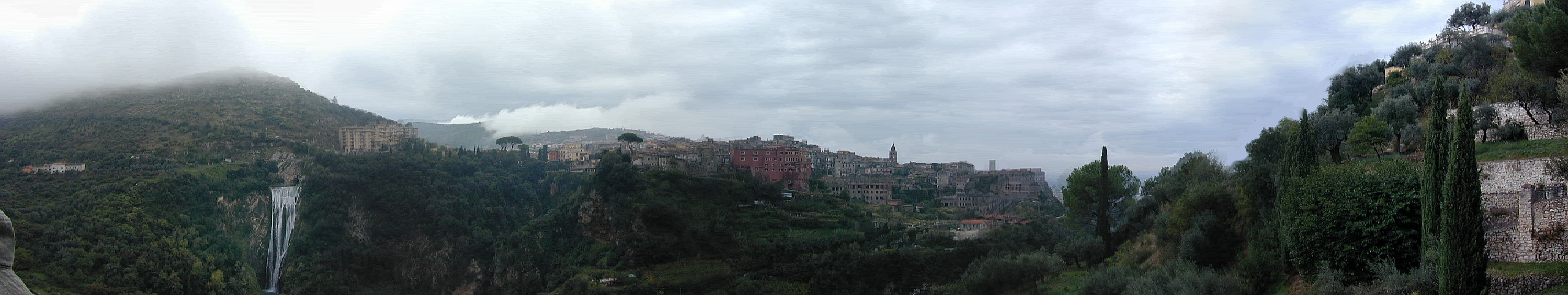 The panoramic view from Sant' Antonio across to Tivoli. The waterfall gets turned on and off through the day. Somewhere down there is the rooster and Italian Willy, the barking dog. Curses on them!