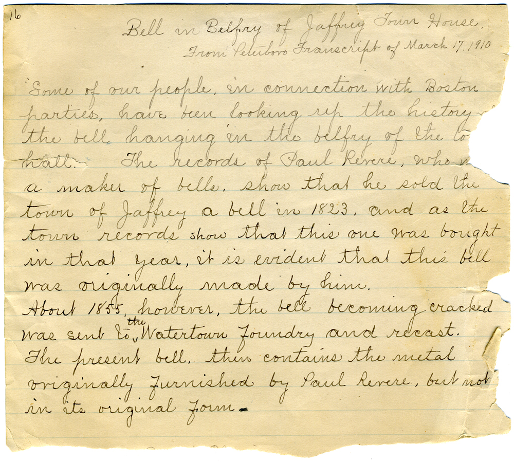 Items Relating to the Bell at the Meetinghouse