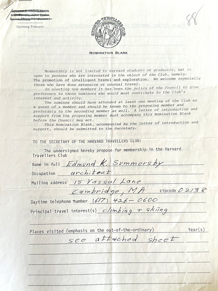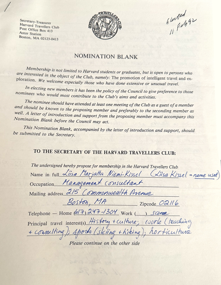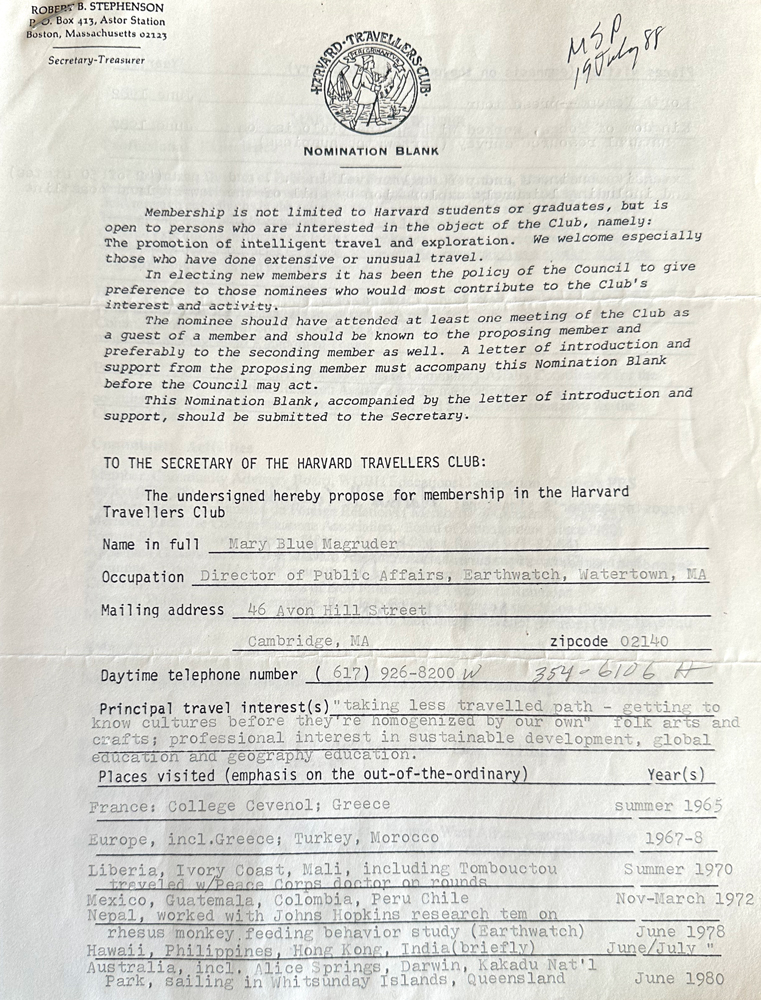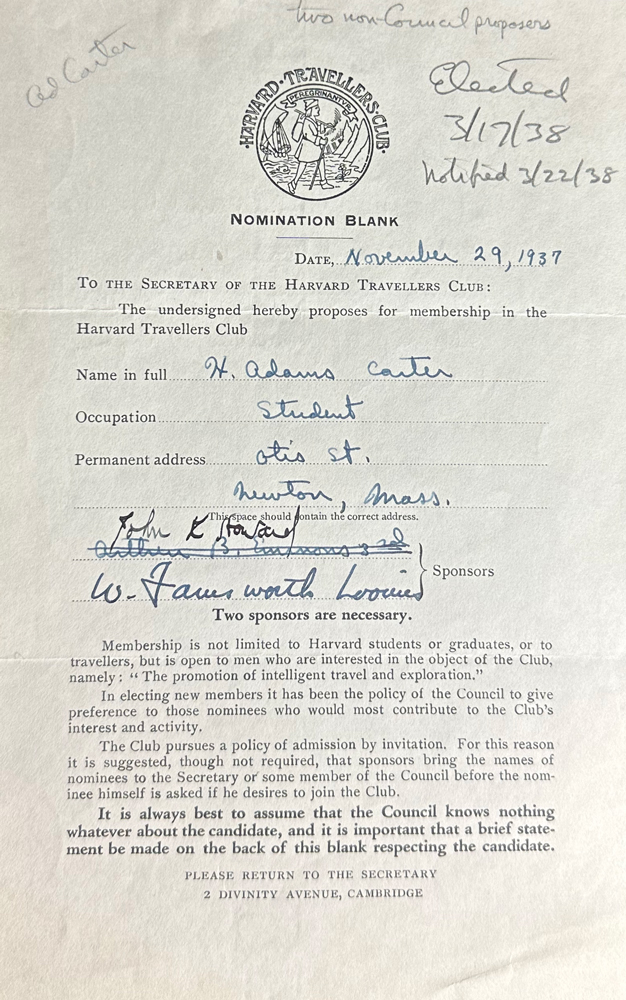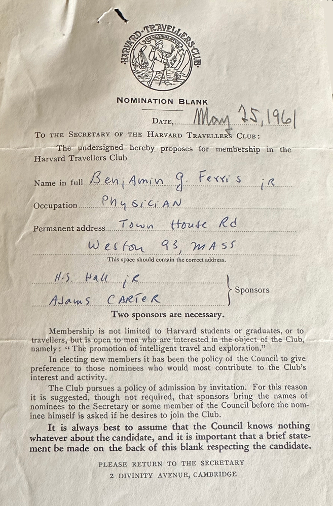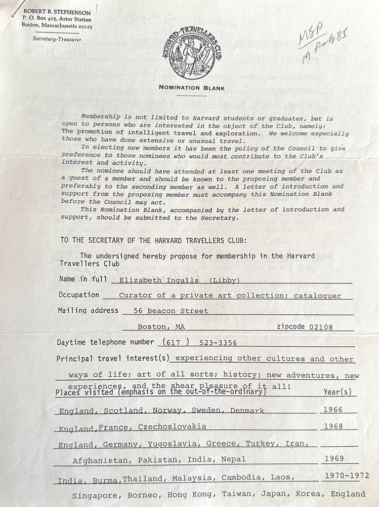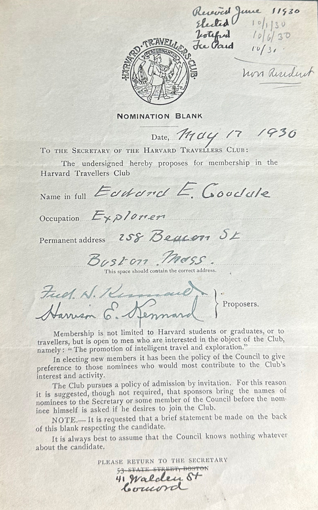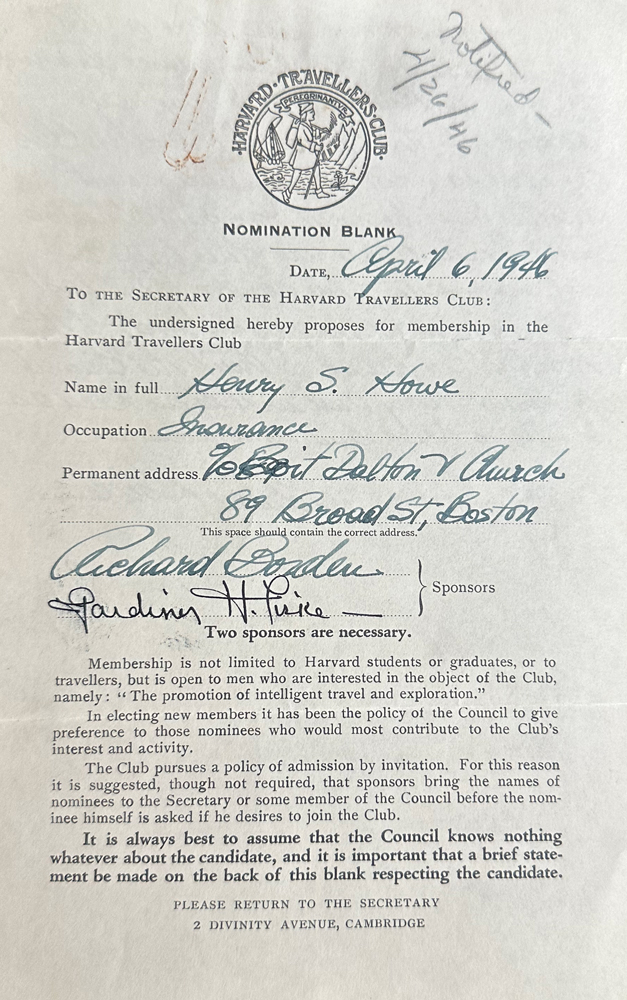HARVARD TRAVELLERS CLUB ARCHIVES