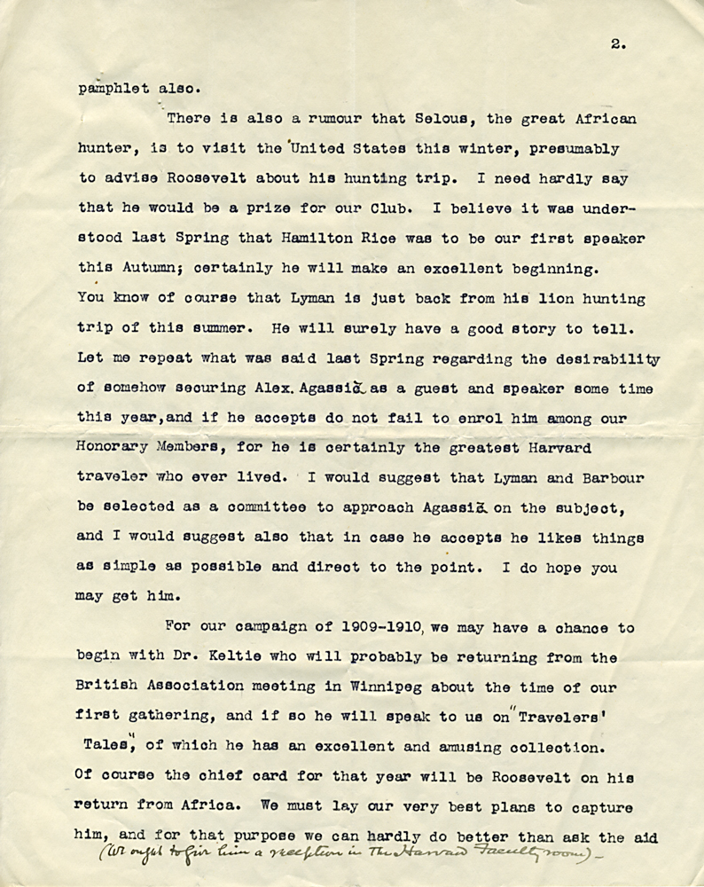 HARVARD TRAVELLERS CLUB ARCHIVES (Box 07, Folder 01) Correspondence Prior to 1911.