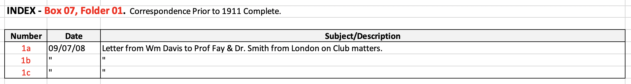 07 refers to Box 07; 01 refers to the Folder; # refers to the Item (multi-page letters are indicated by lower-case letters: a, b, c, etc.).