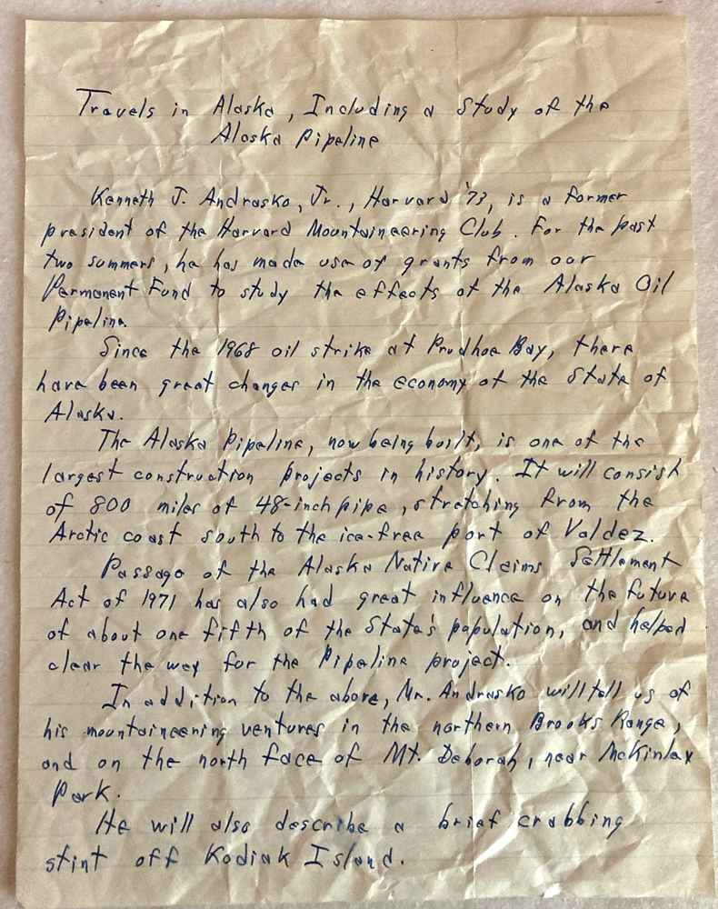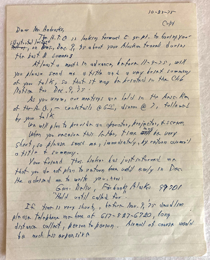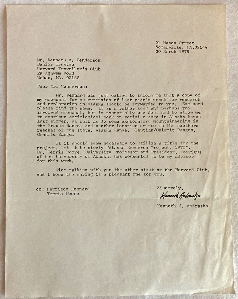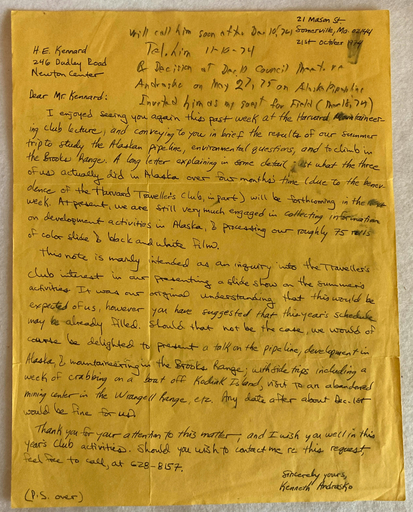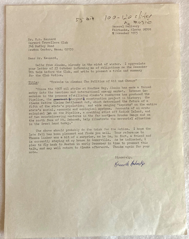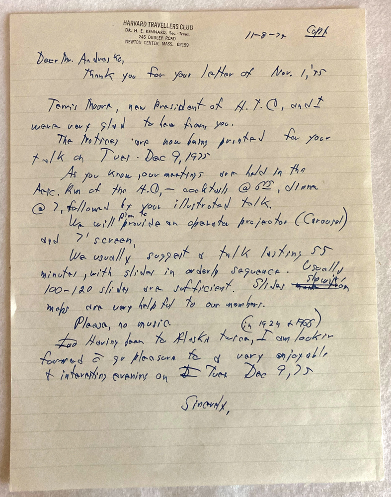HARVARD TRAVELLERS CLUB ARCHIVES (Box 07, Folder 22) Correspondence (A) Mostly to or from Harrison E. "Hap" Kennard, Secretary (1961-1976), later President.