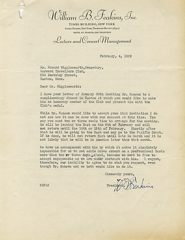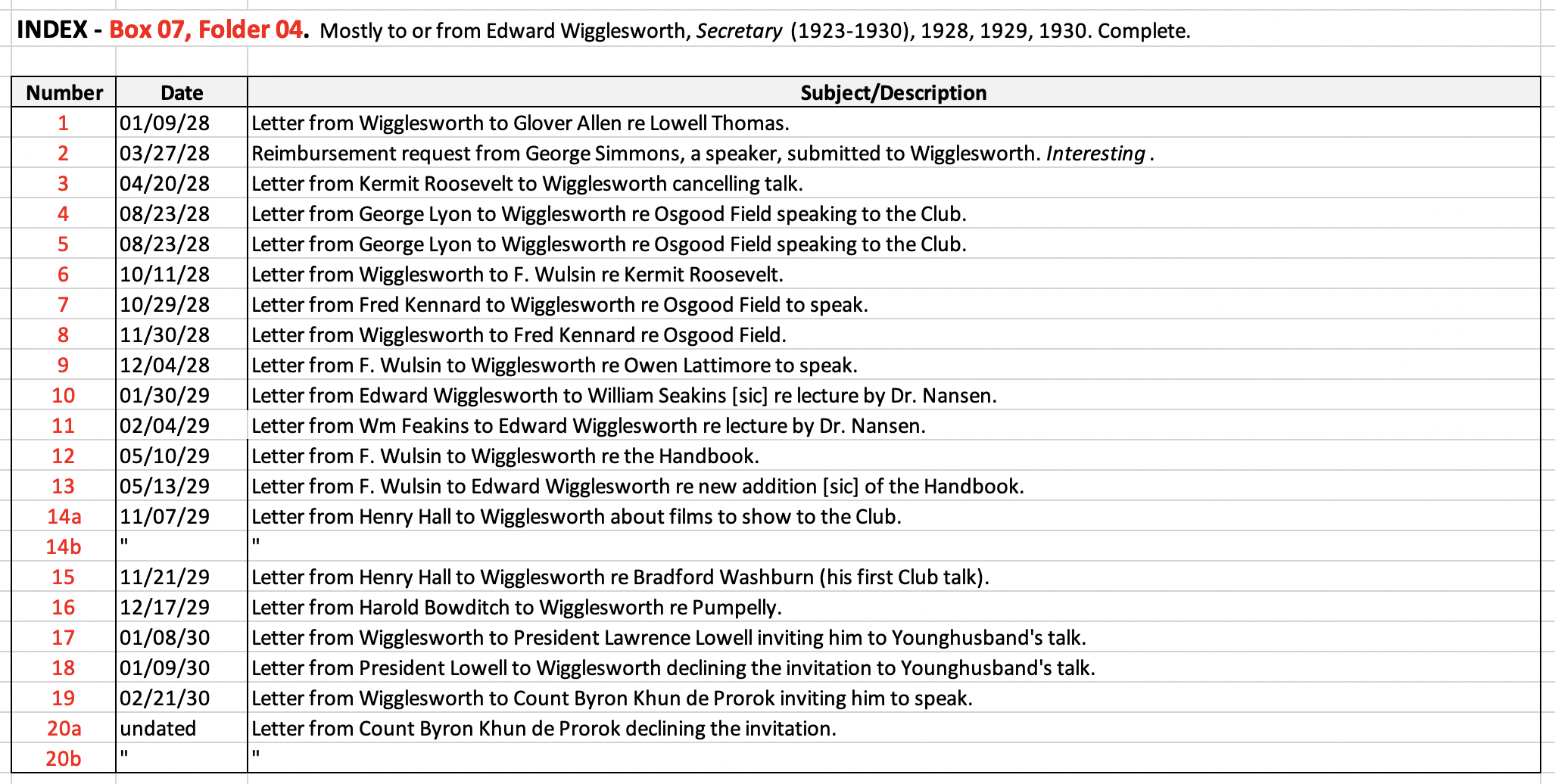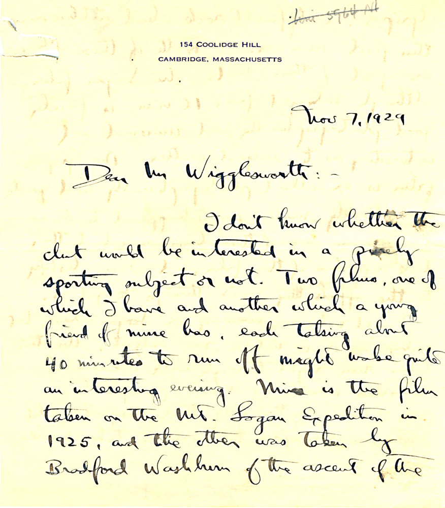 HARVARD TRAVELLERS CLUB ARCHIVES (Box 07, Folder 04) Mostly to or from Edward Wigglesworth, Secretary (1923-1930), 1928, 1929, 1930.