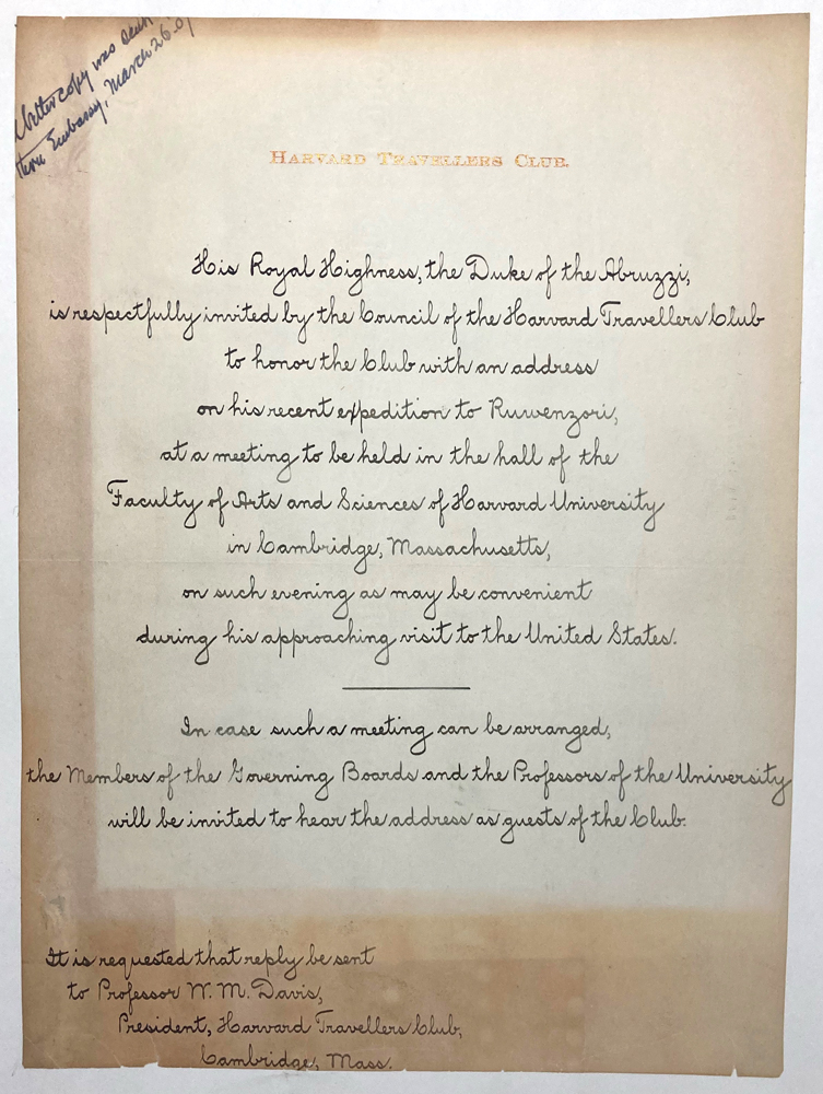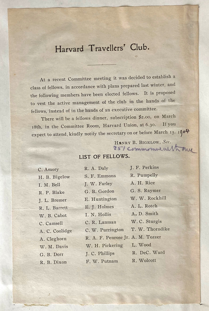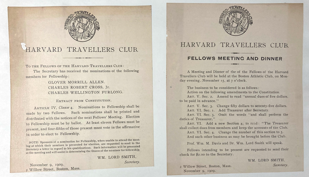 HARVARD TRAVELLERS CLUB ARCHIVES