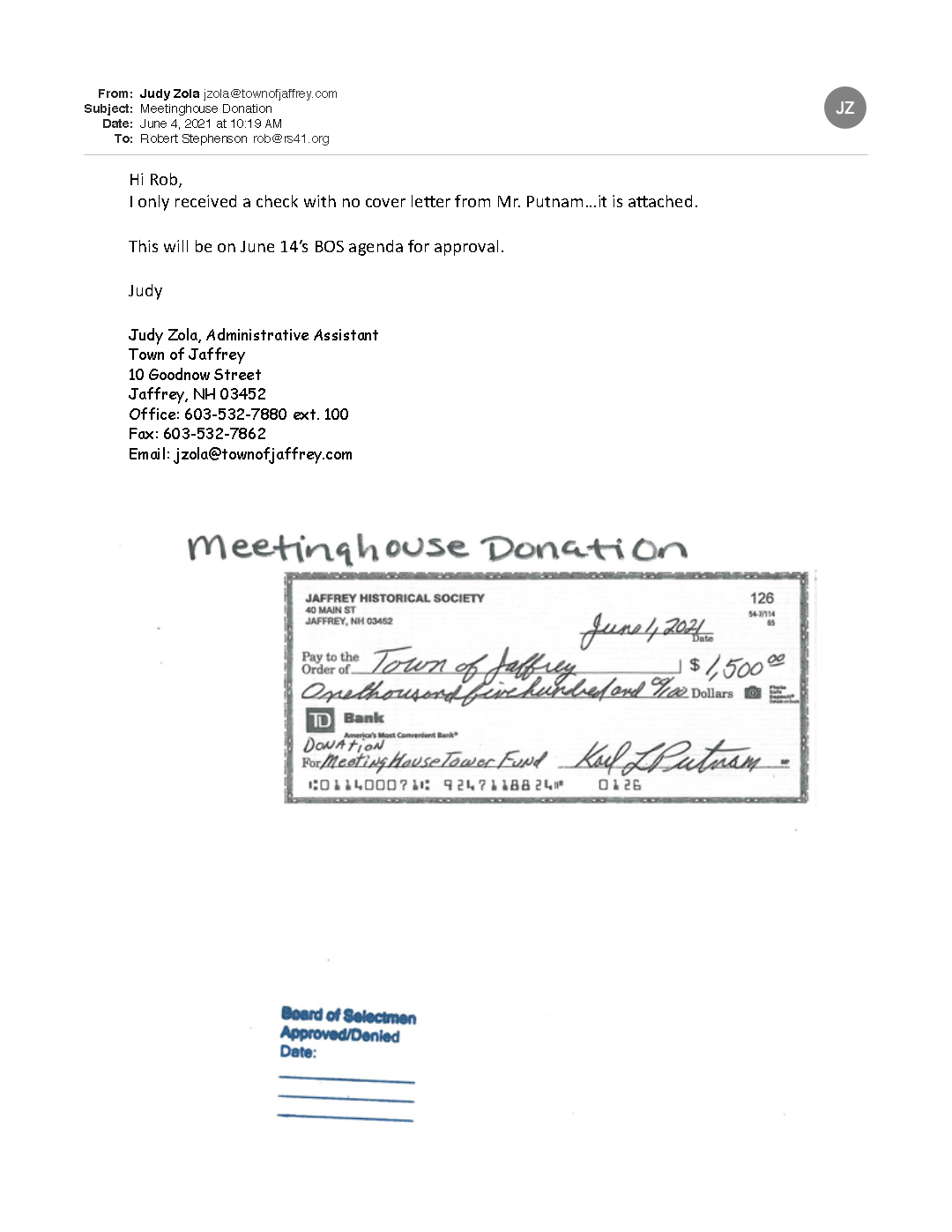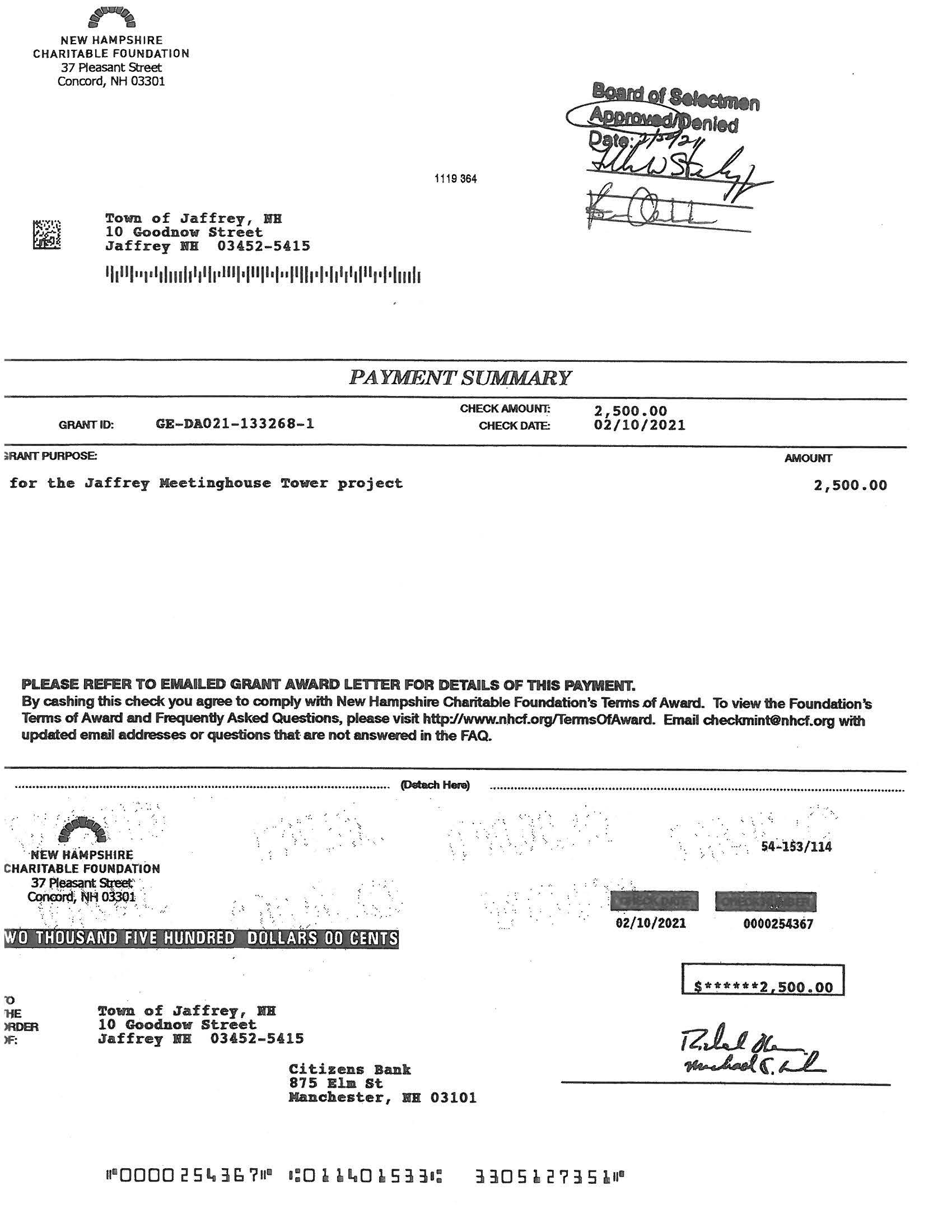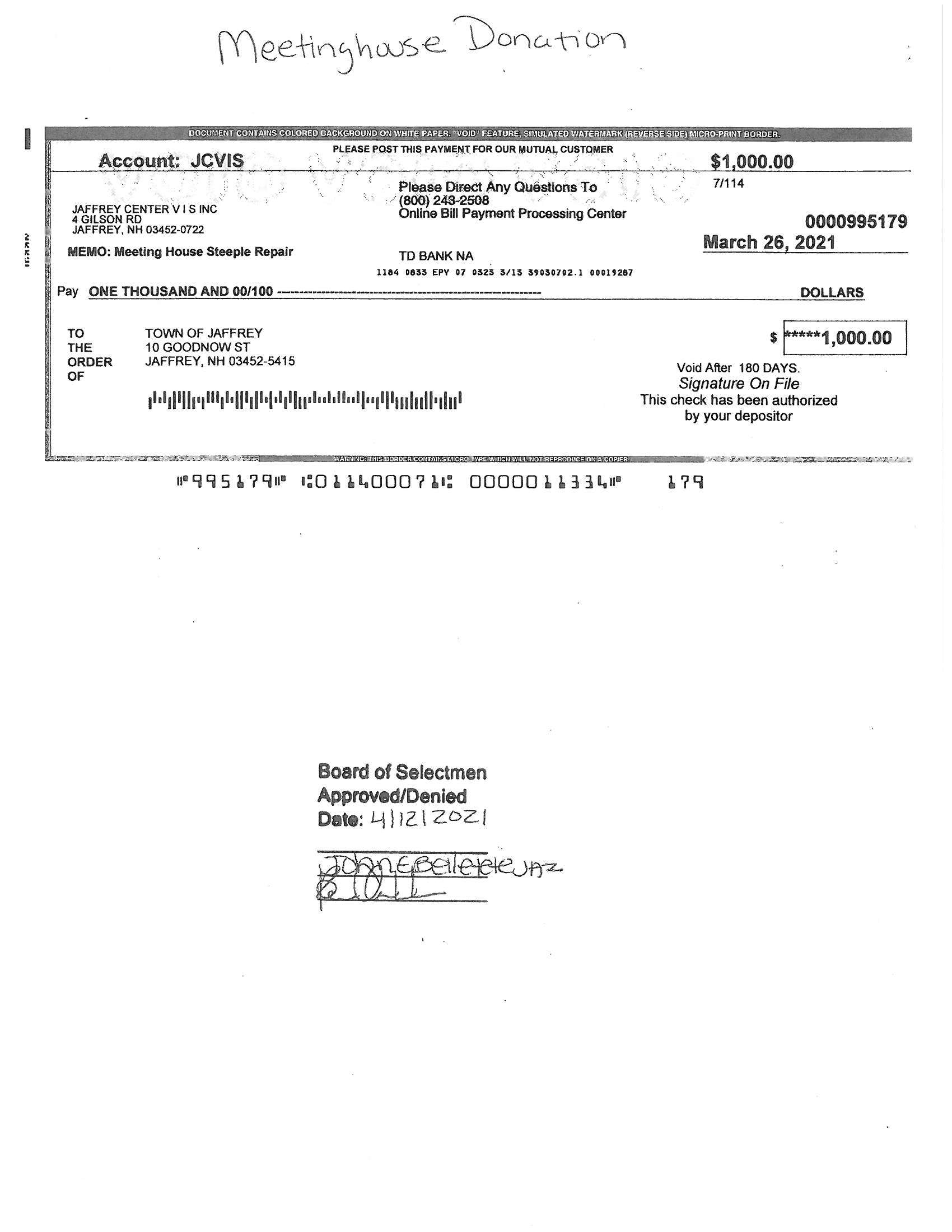 | Jaffrey Historic District Trust Fund (Bal 10/31/22: $6,047.65) | |||