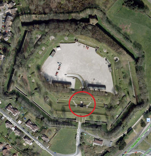 Crownhill Fort from the air, where we stayed three nights in Plymouth. Our quarters are circled.
