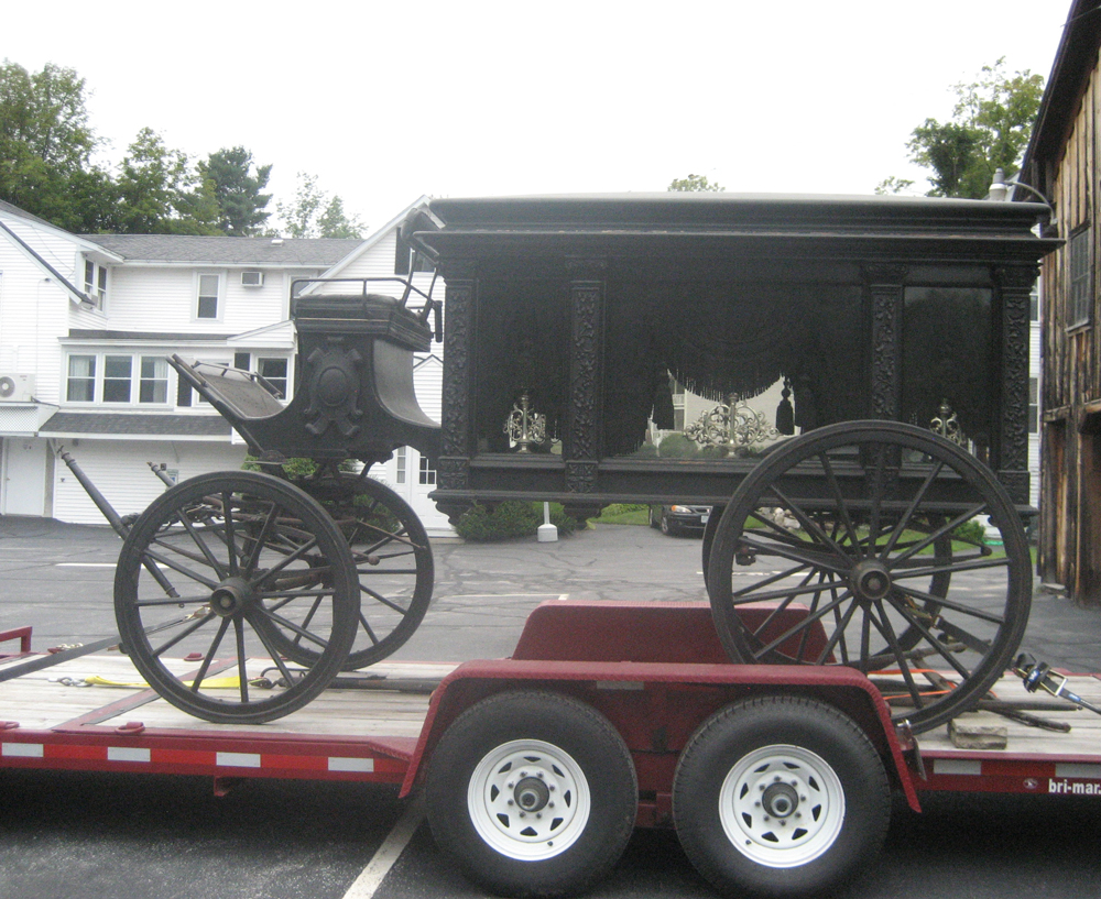 Wheeled hearse and Sleigh hearse.
