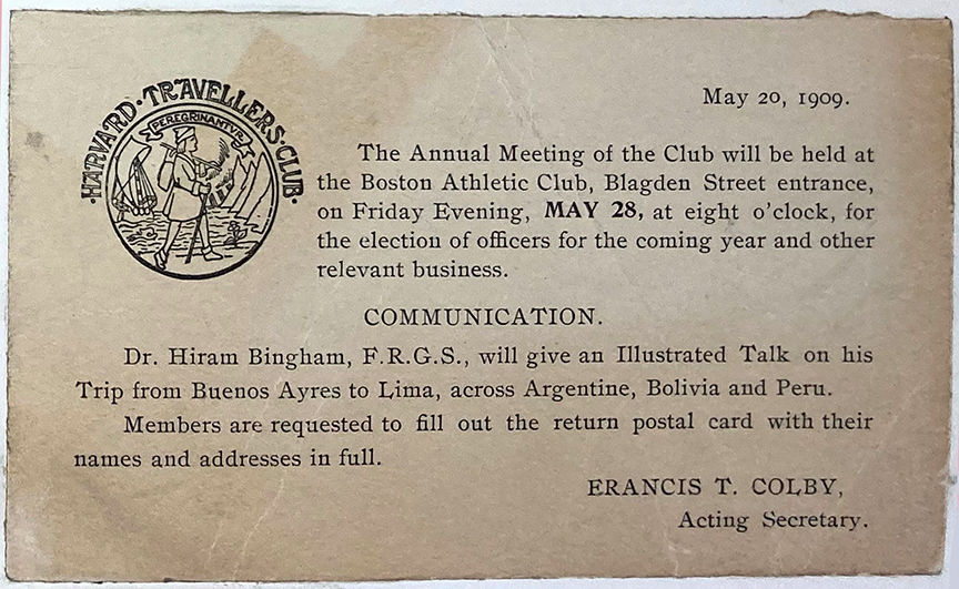 HARVARD TRAVELLERS CLUB ARCHIVES