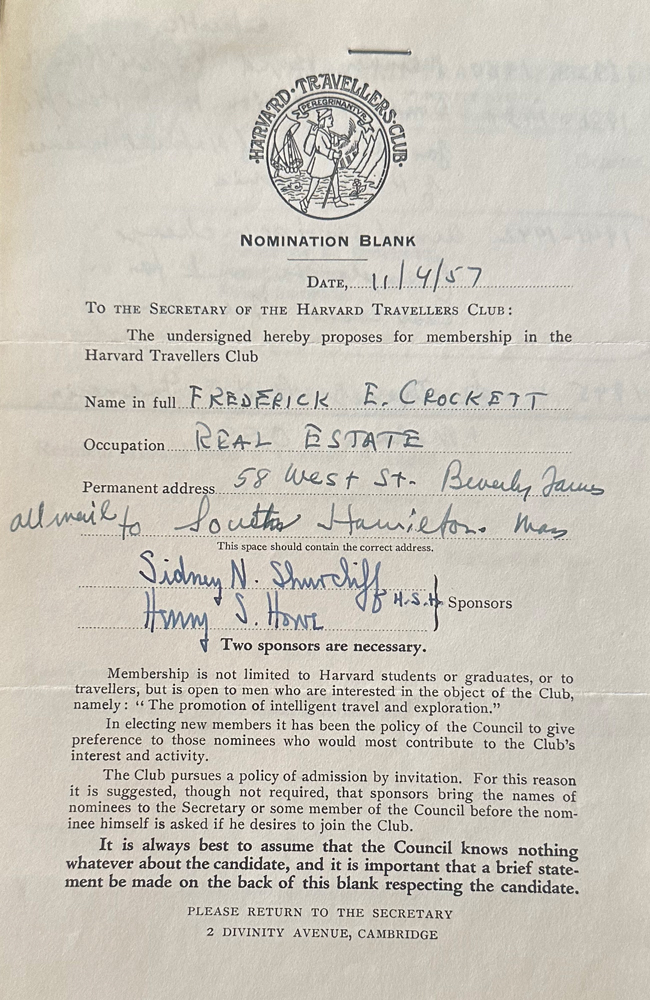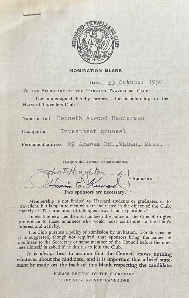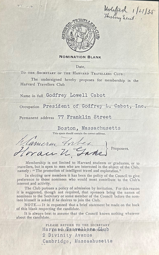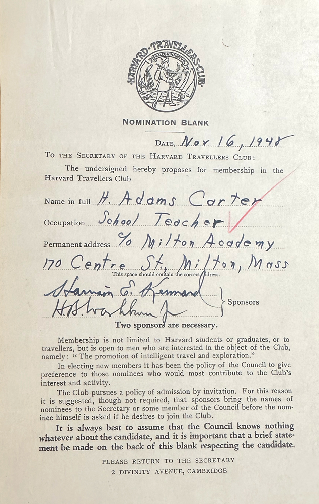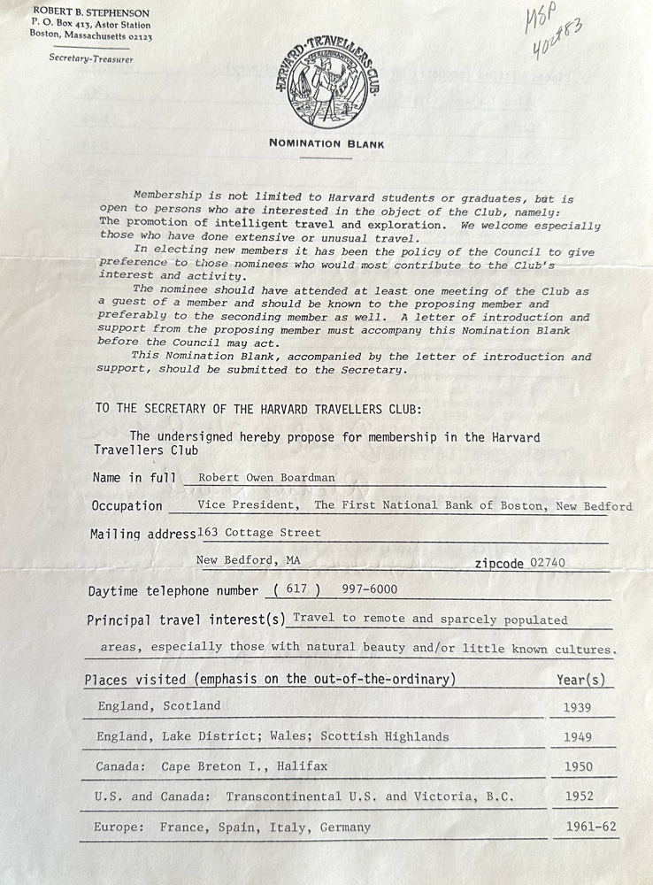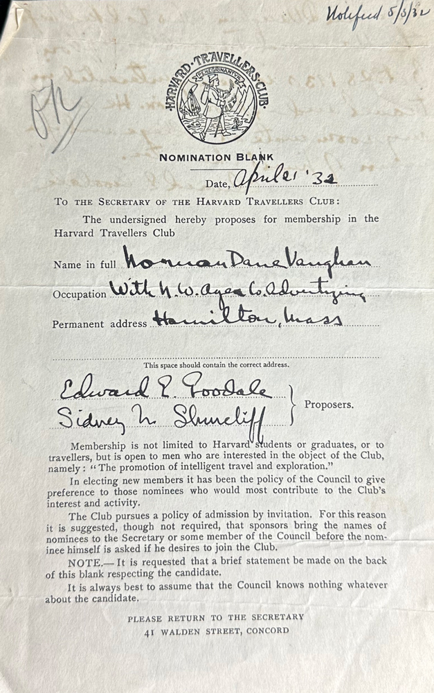 HARVARD TRAVELLERS CLUB ARCHIVES