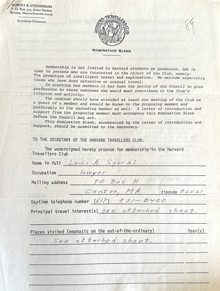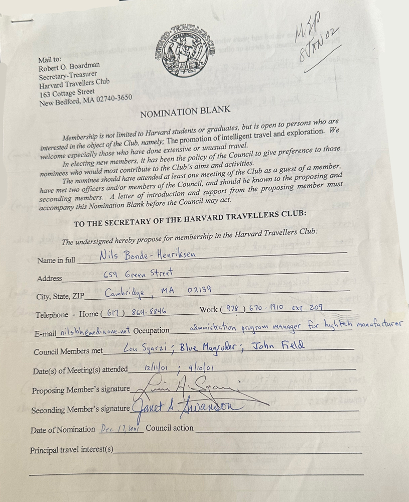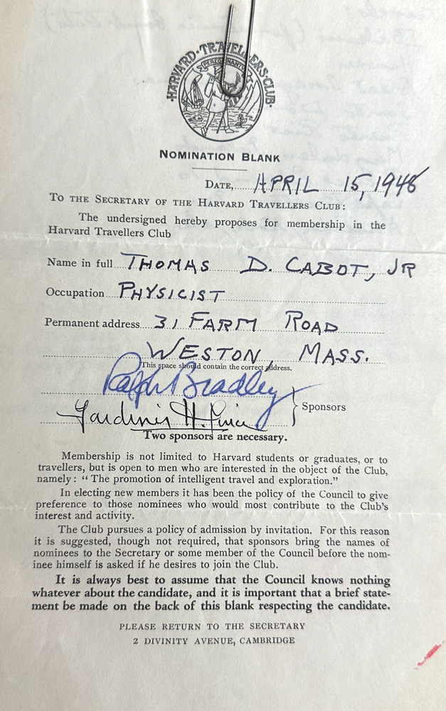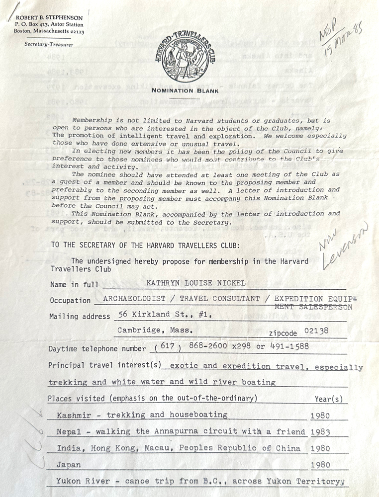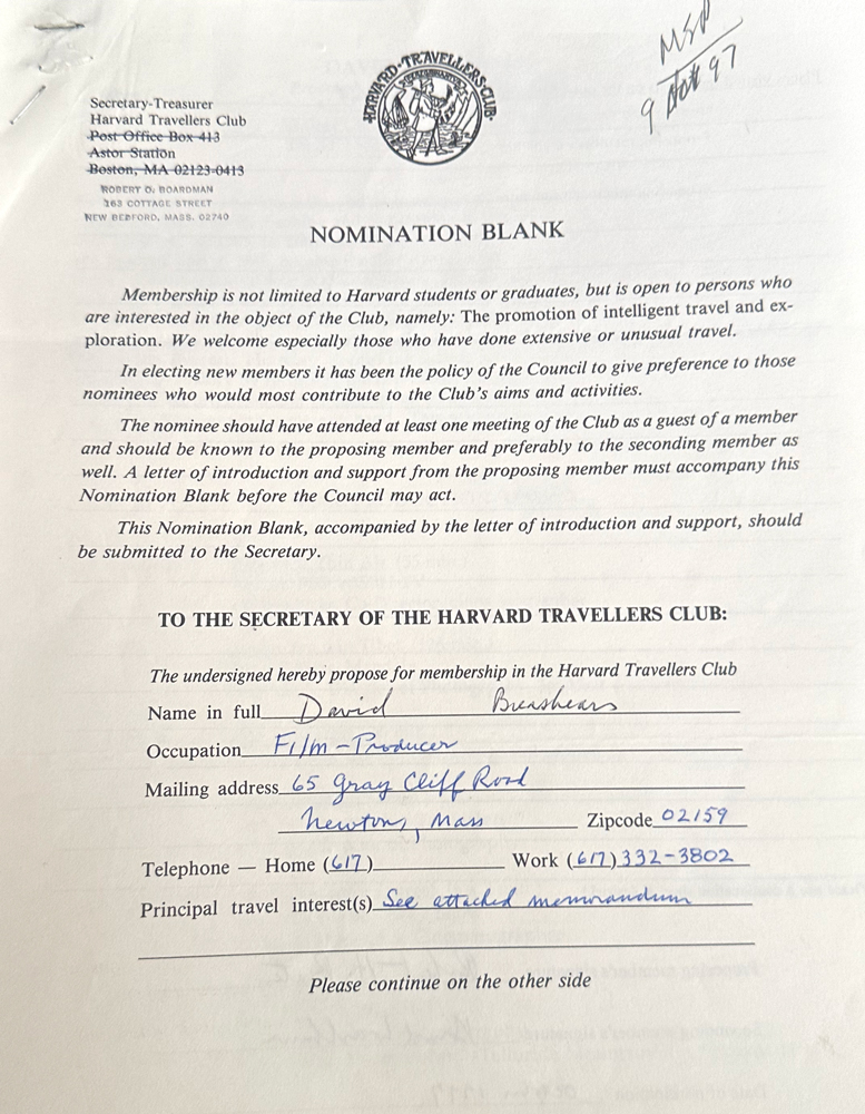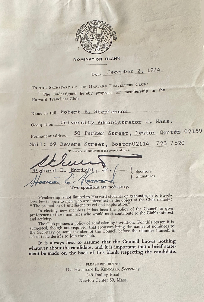 HARVARD TRAVELLERS CLUB ARCHIVES