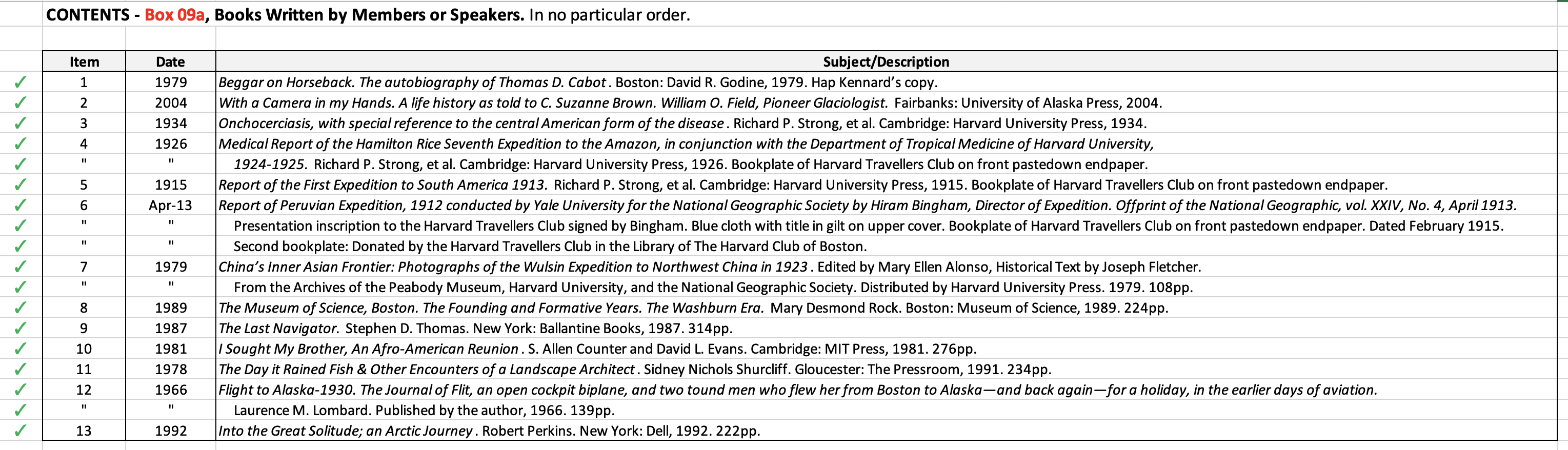 HARVARD TRAVELLERS CLUB ARCHIVES