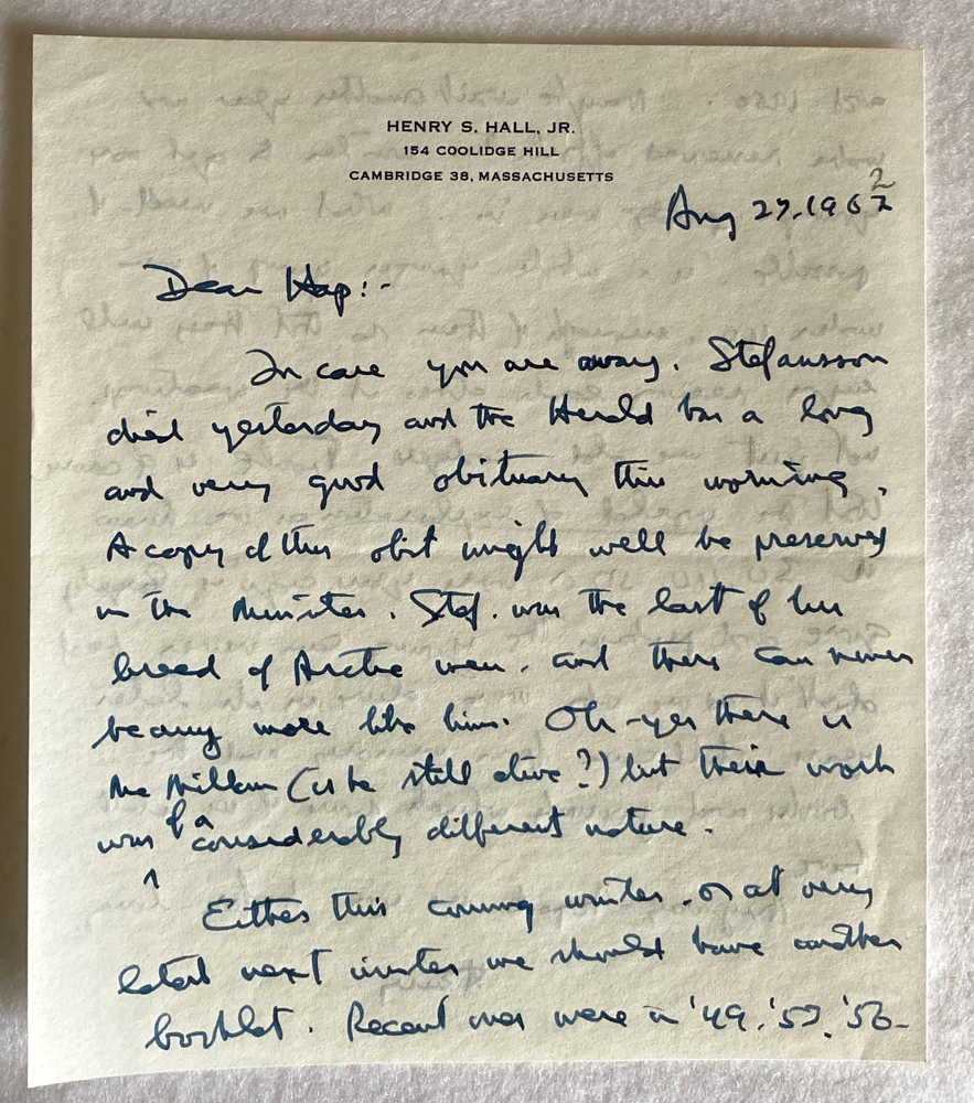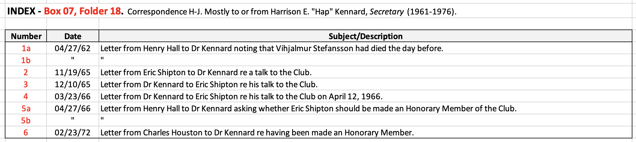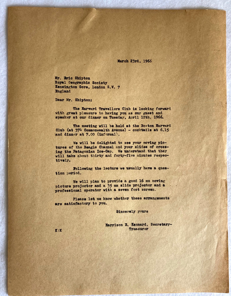 HARVARD TRAVELLERS CLUB ARCHIVES (Box 07, Folder 18) Correspondence H-J Mostly to or from Harrison E. "Hap" Kennard, Secretary (1961-1976).
