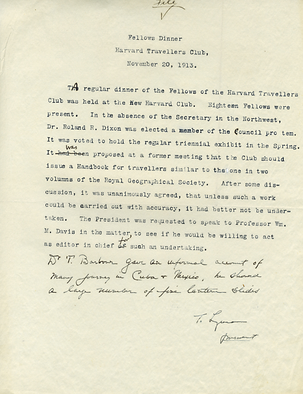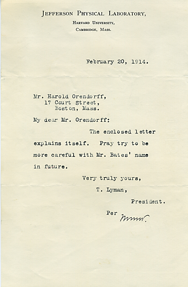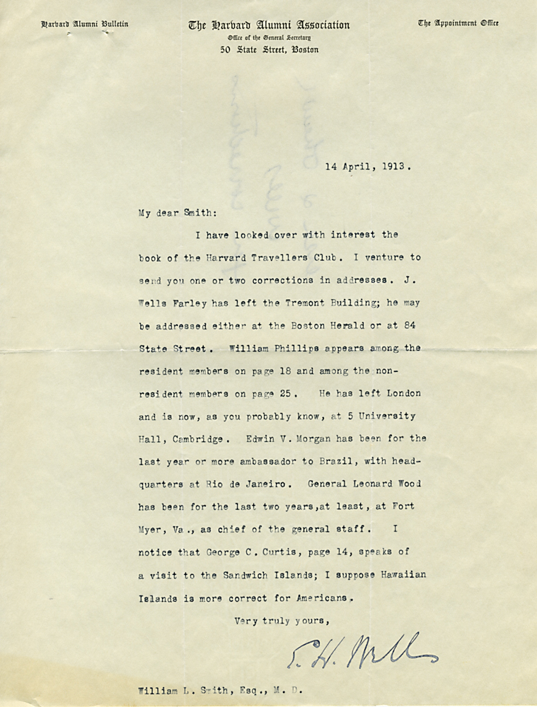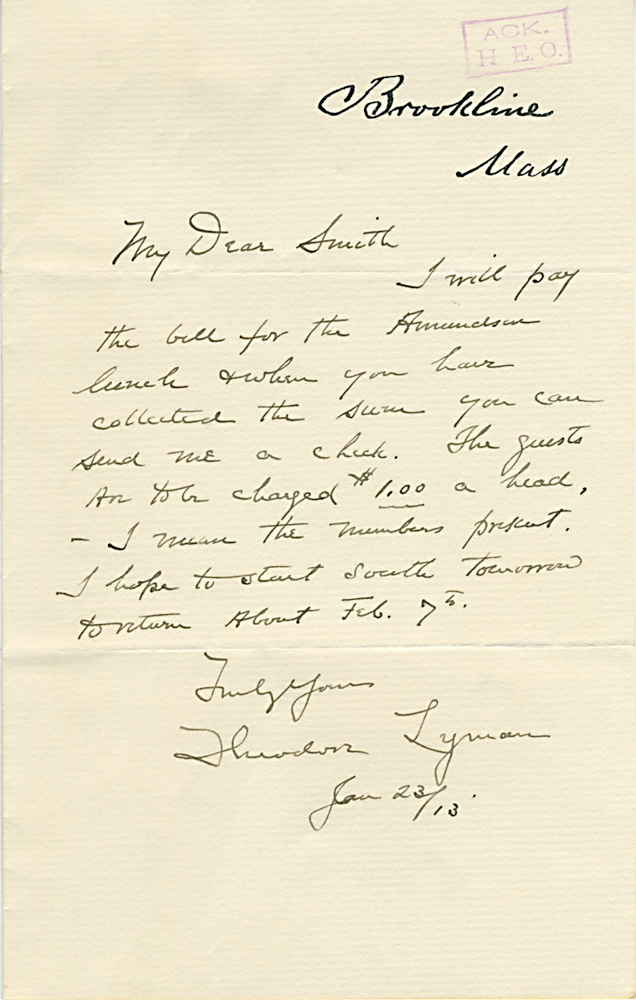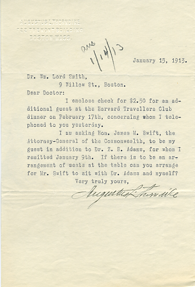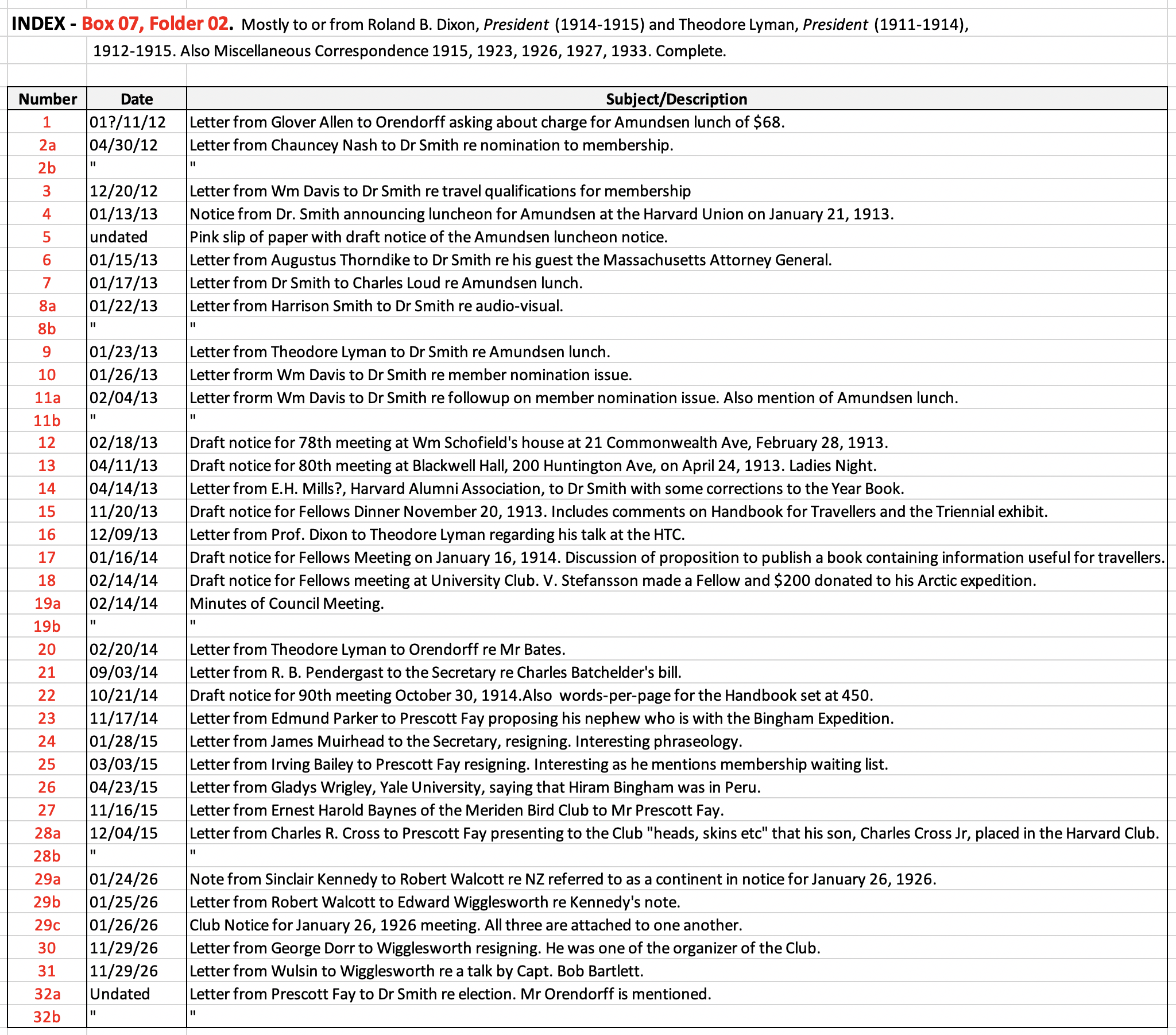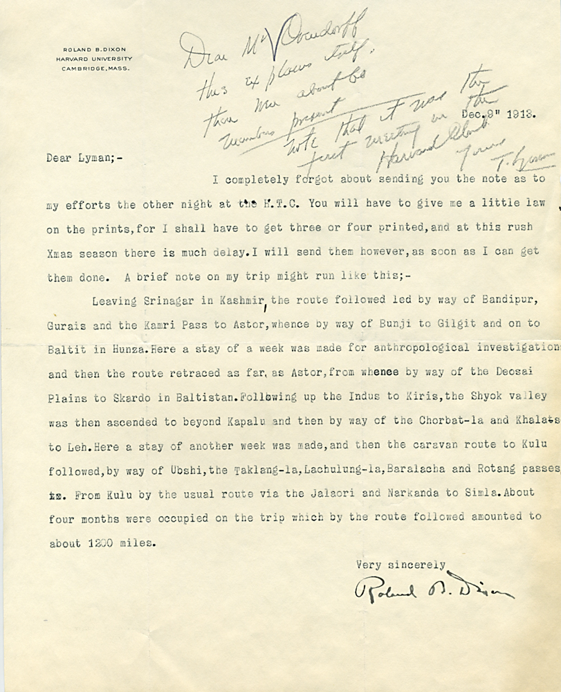 (Box 07, Folder 02) Mostly to or from Roland B. Dixon, President (1914-1915) and Theodore Lyman, President (1911-1914), 1912-1915. Also Miscellaneous Correspondence 1915, 1923, 1926, 1927, 1933.