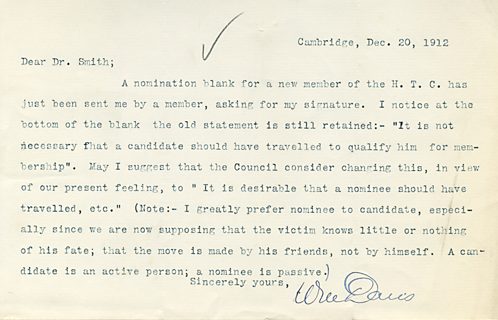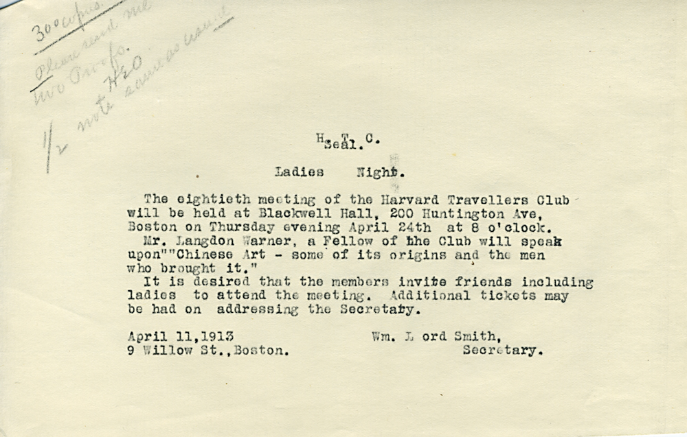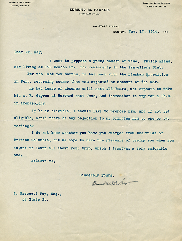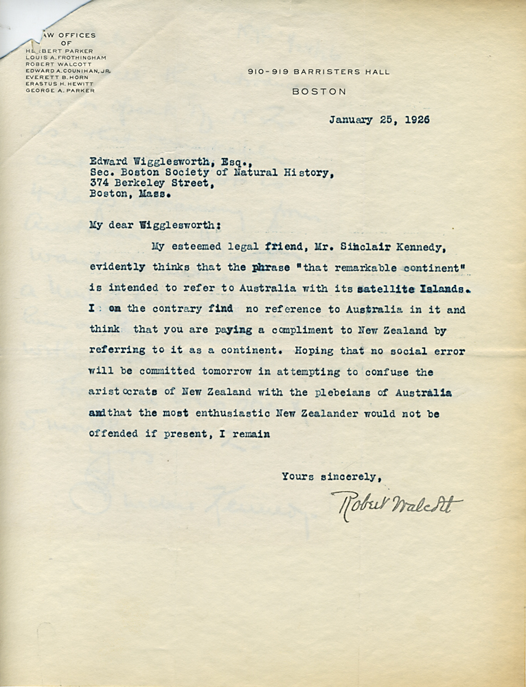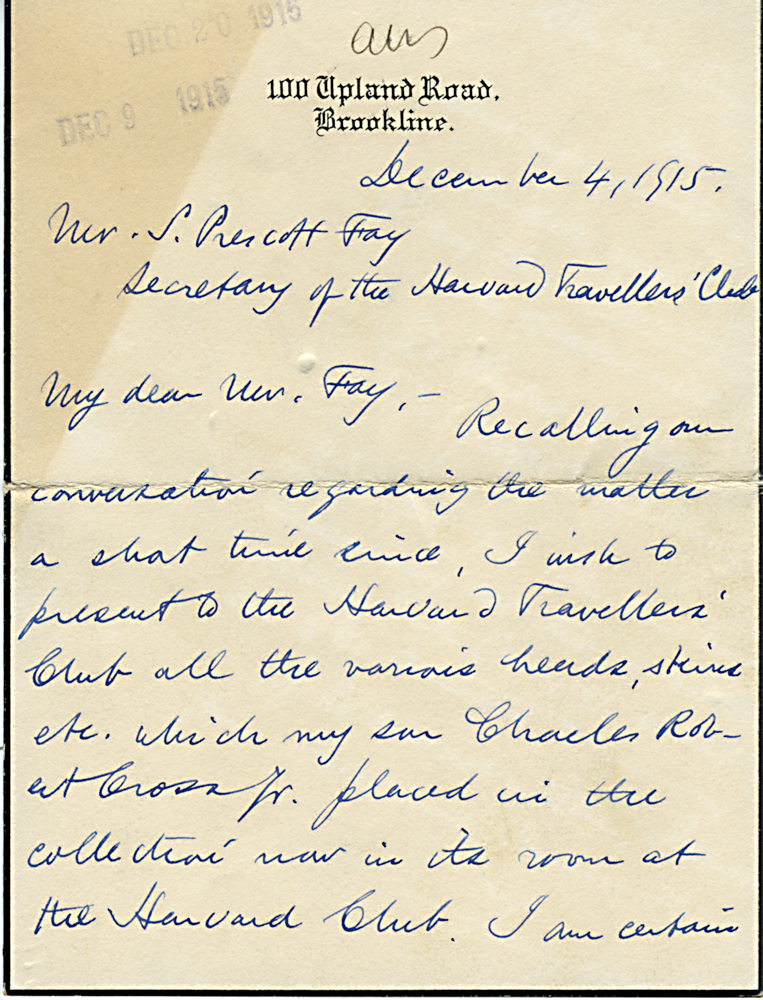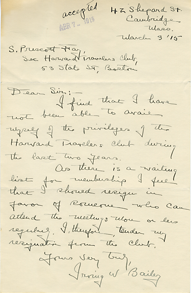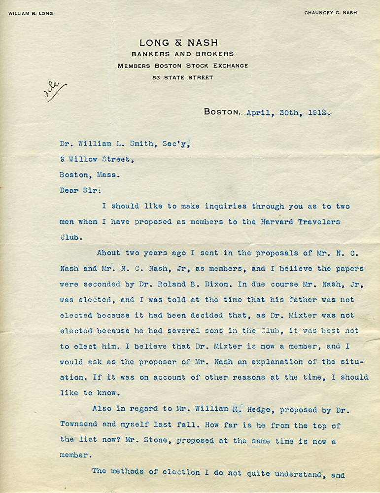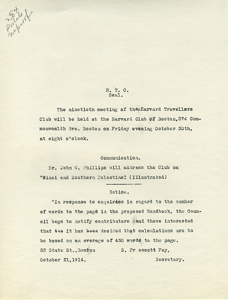 (Box 07, Folder 02) Mostly to or from Roland B. Dixon, President (1914-1915) and Theodore Lyman, President (1911-1914), 1912-1915. Also Miscellaneous Correspondence 1915, 1923, 1926, 1927, 1933.