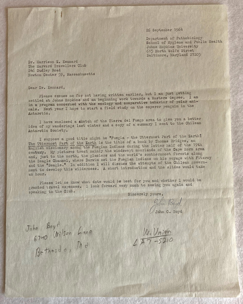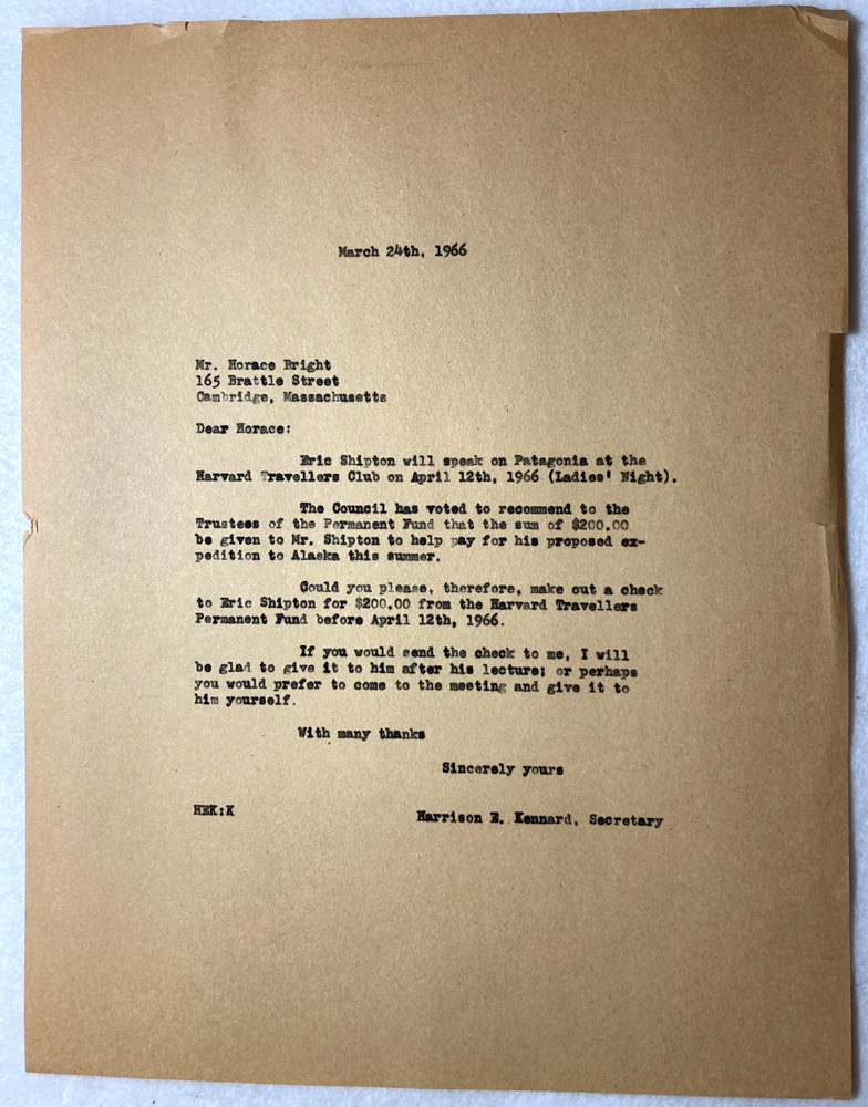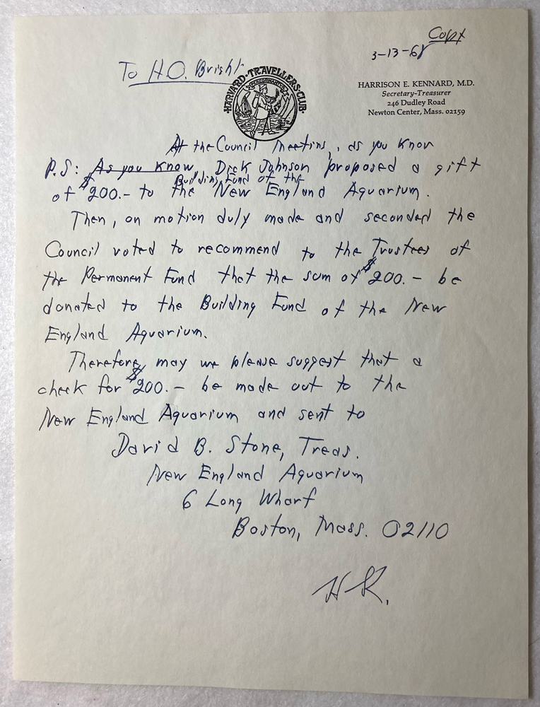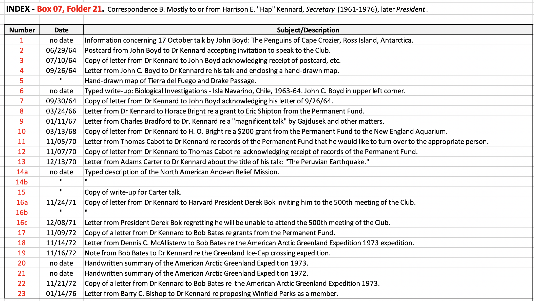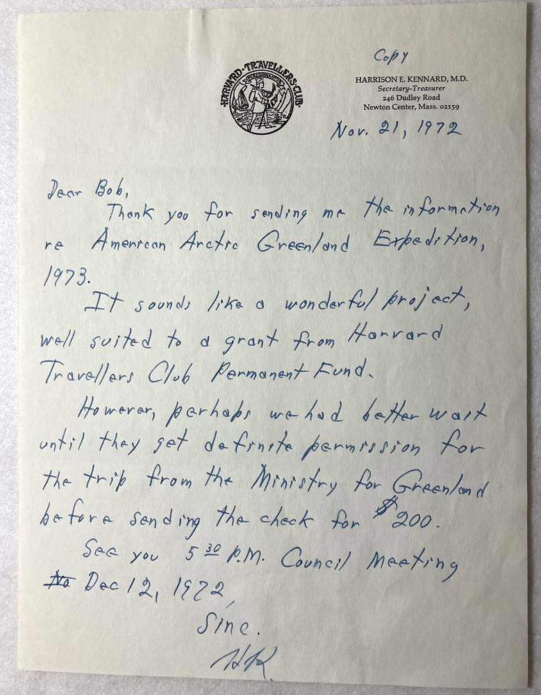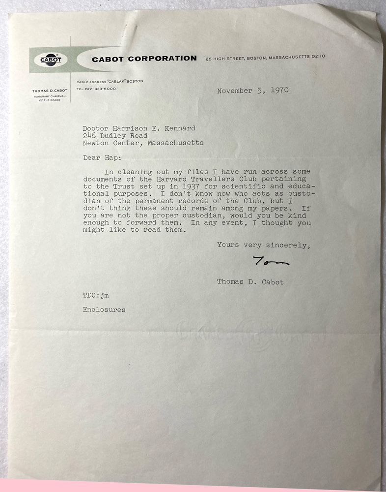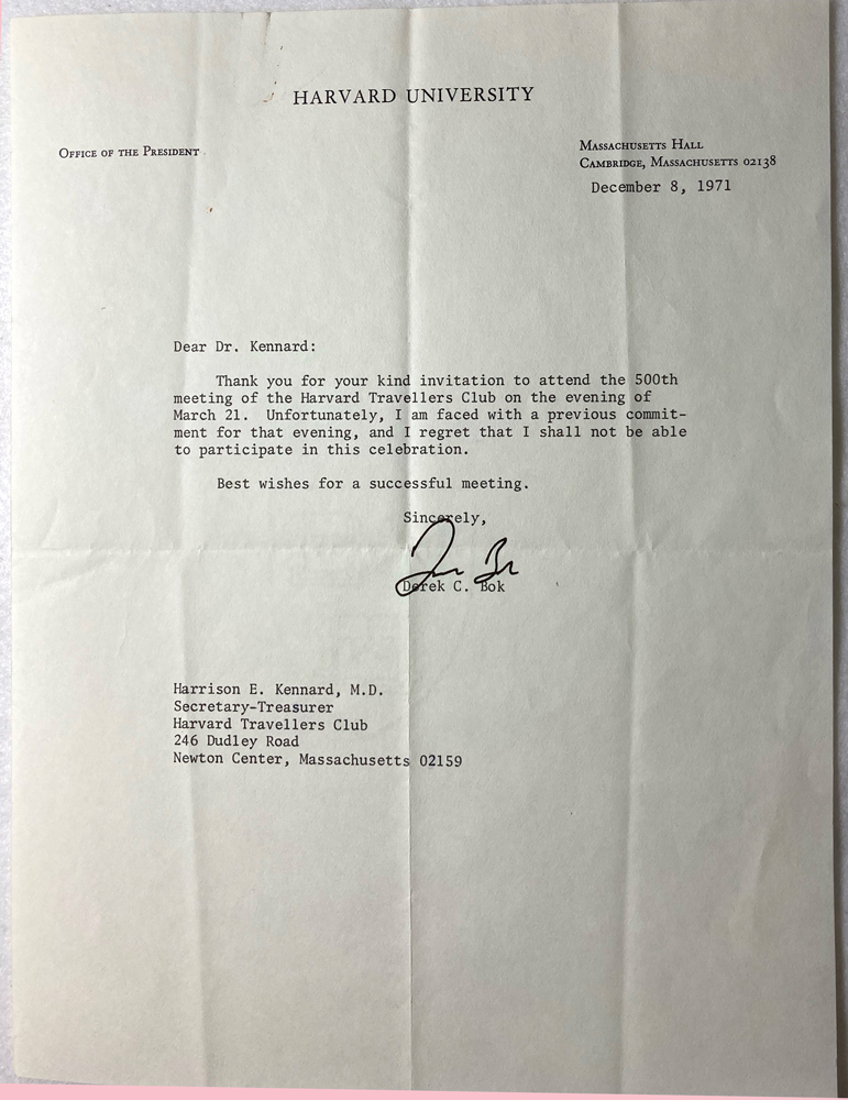 HARVARD TRAVELLERS CLUB ARCHIVES (Box 07, Folder 21) Correspondence B Mostly to or from Harrison E. "Hap" Kennard, Secretary (1961-1976).