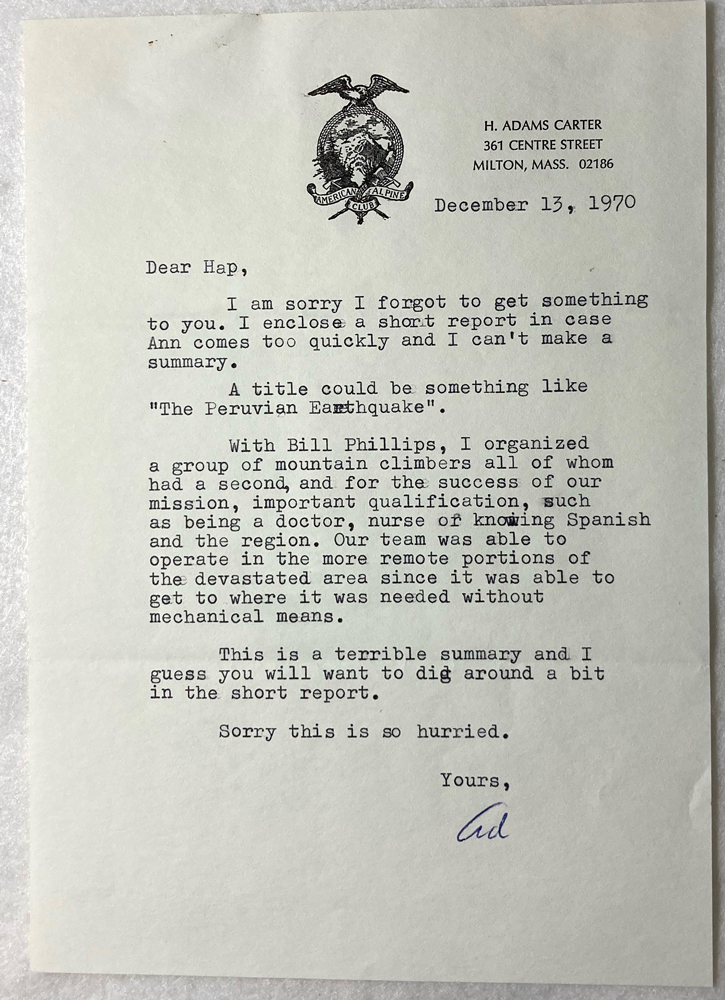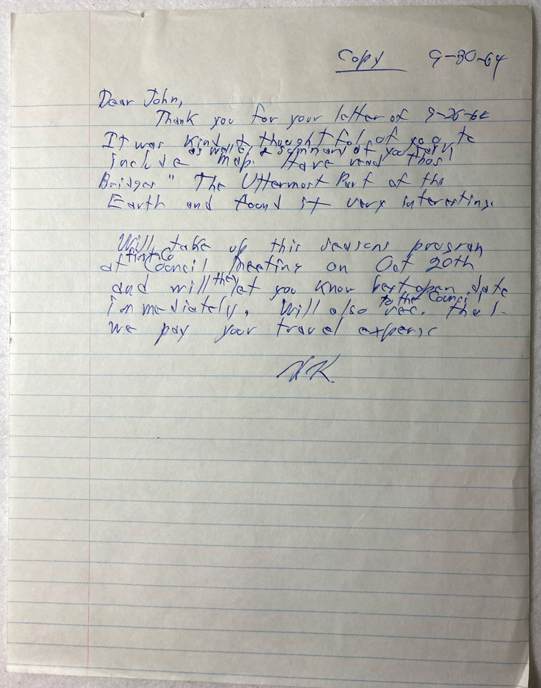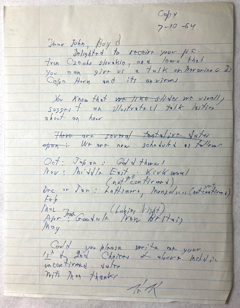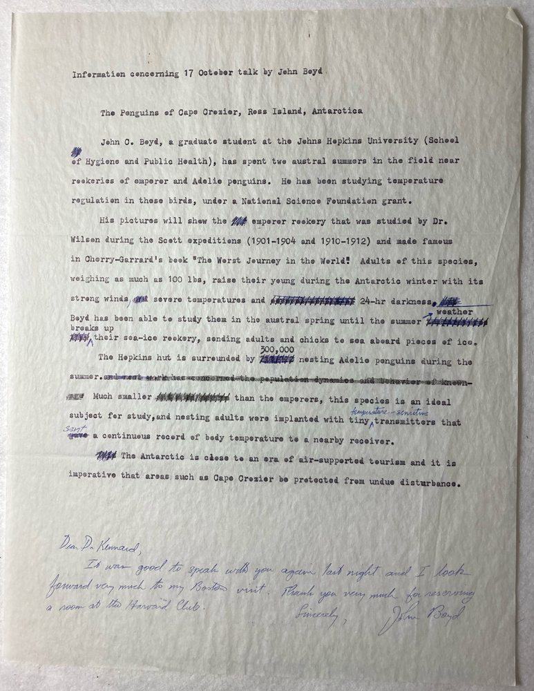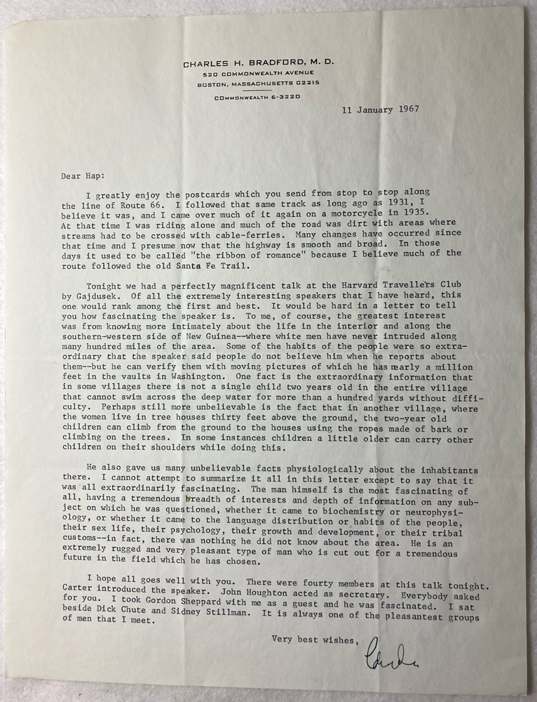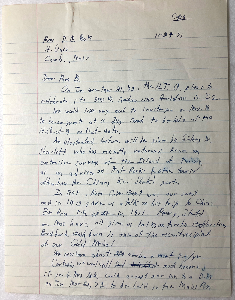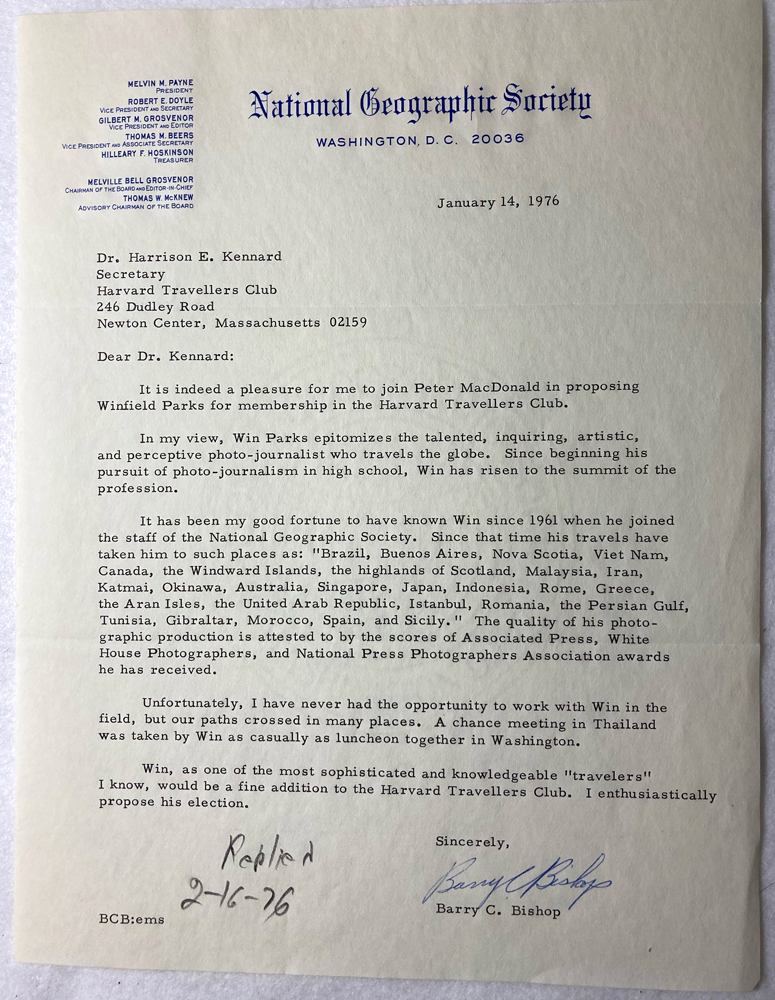 HARVARD TRAVELLERS CLUB ARCHIVES (Box 07, Folder 21) Correspondence B Mostly to or from Harrison E. "Hap" Kennard, Secretary (1961-1976).