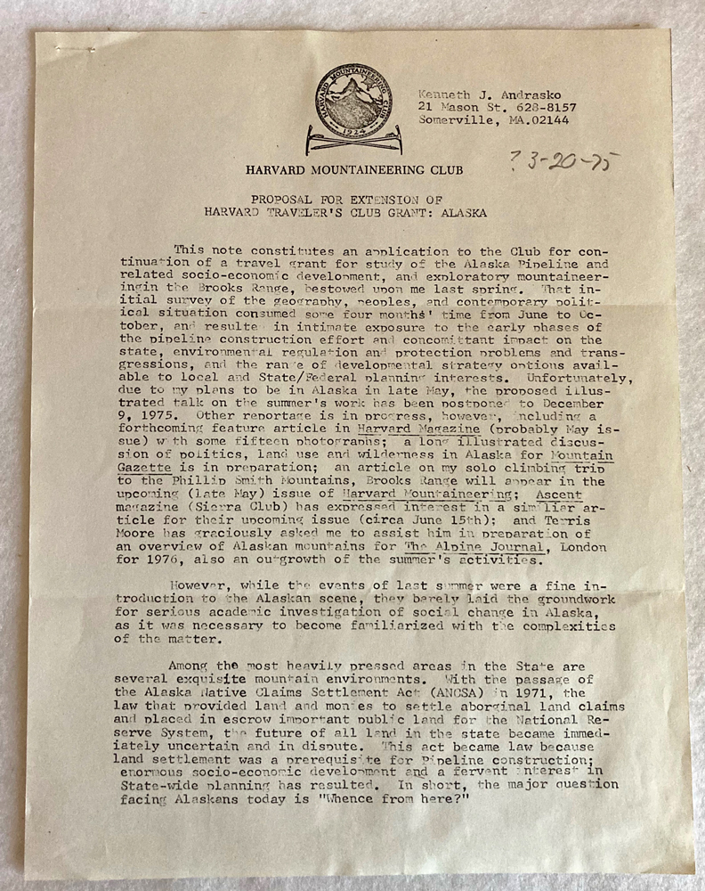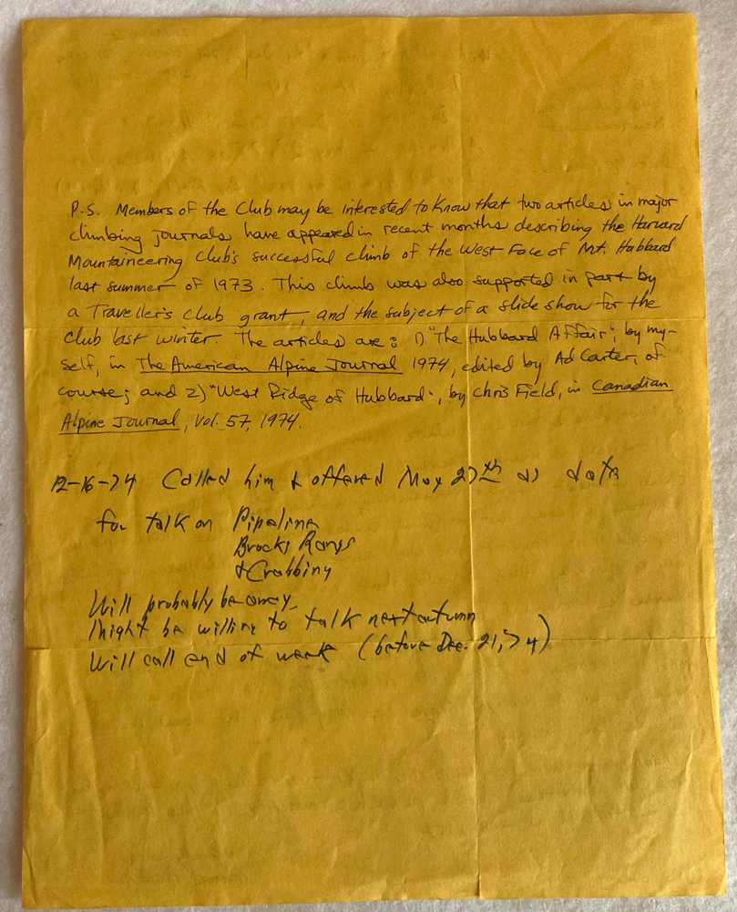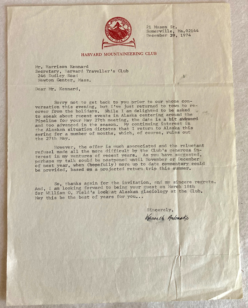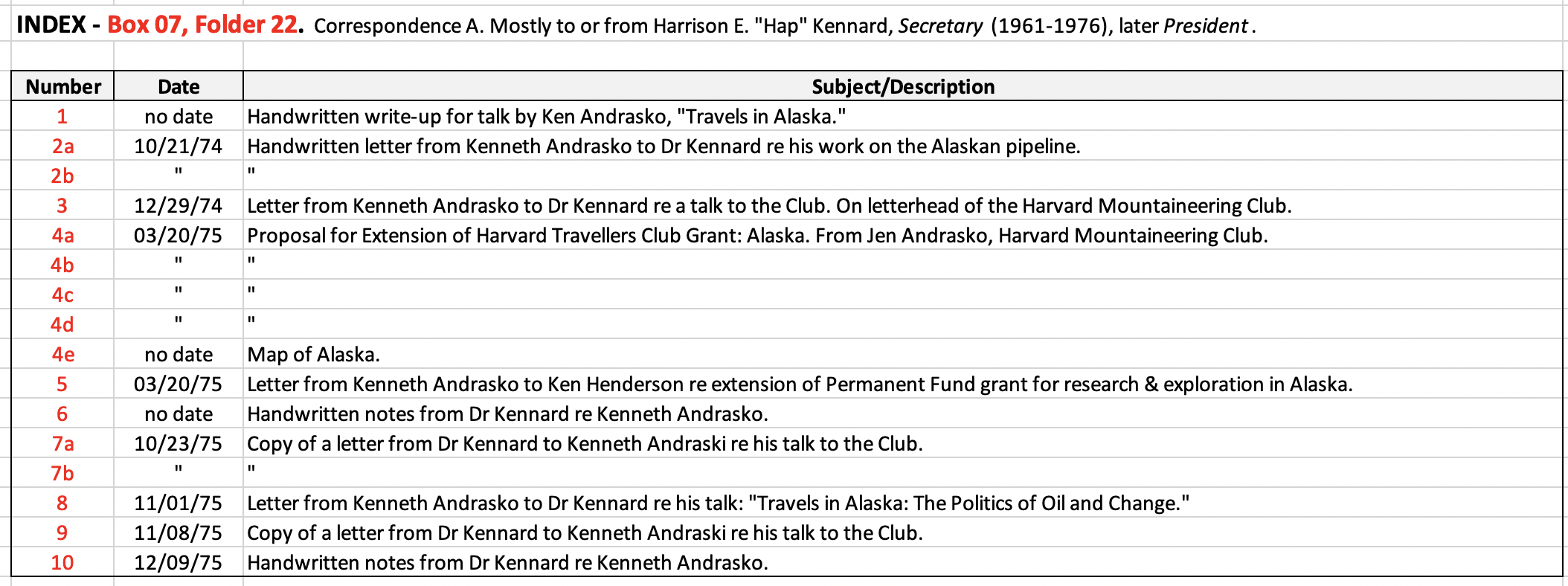 HARVARD TRAVELLERS CLUB ARCHIVES (Box 07, Folder 22) Correspondence (A) Mostly to or from Harrison E. "Hap" Kennard, Secretary (1961-1976), later President.