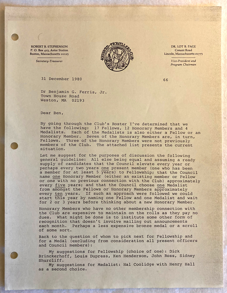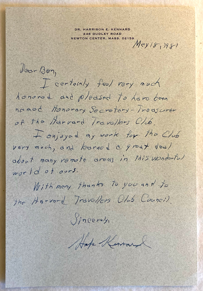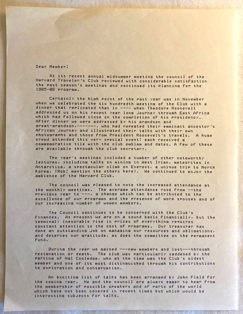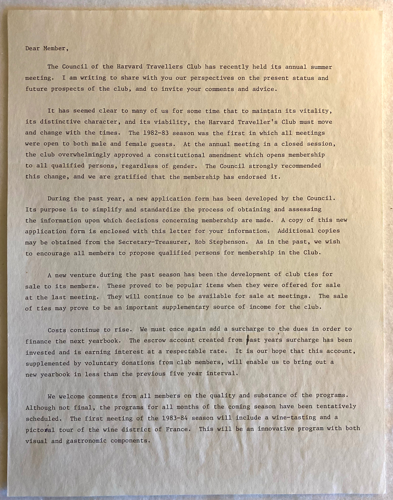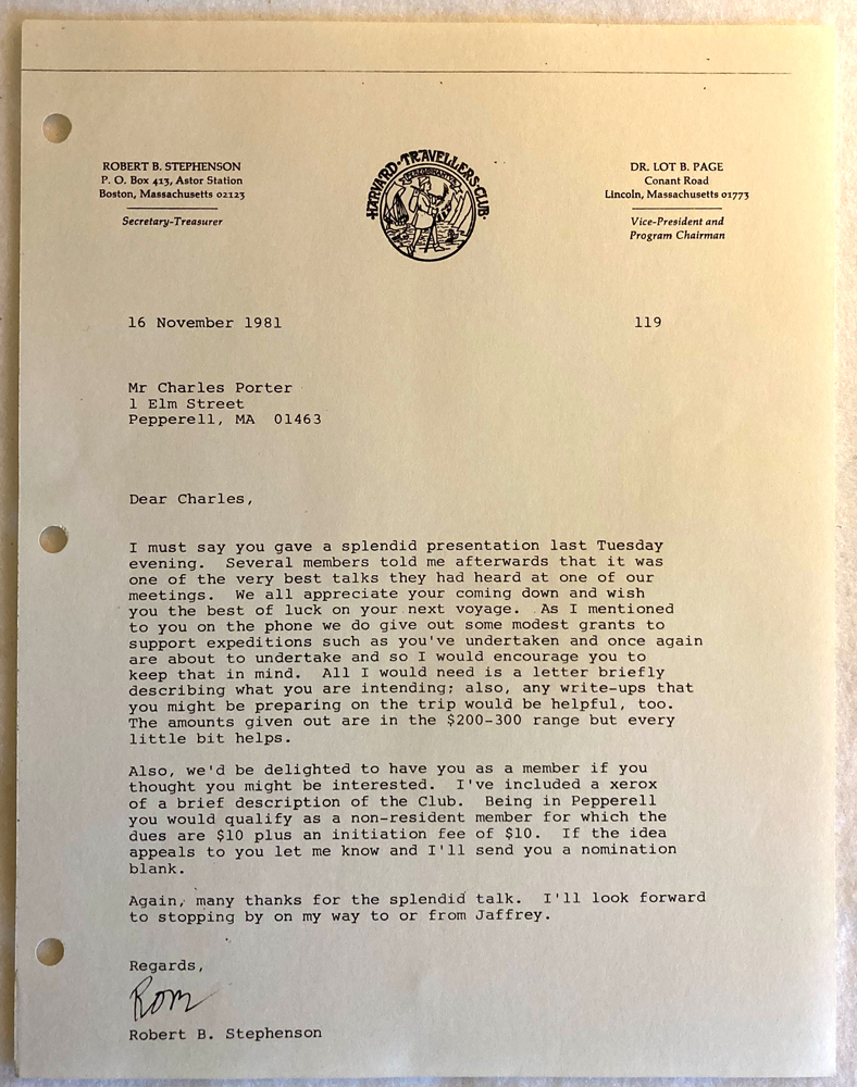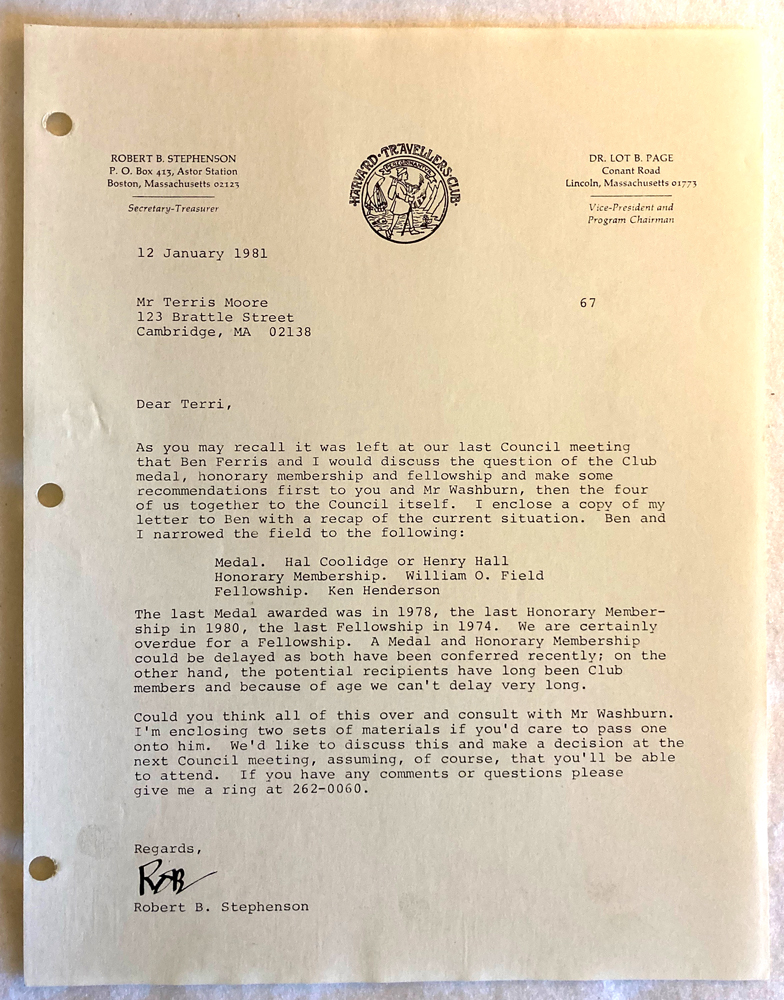 HARVARD TRAVELLERS CLUB ARCHIVES (Box 07, Folder 24) Mostly to or from Robert B. Stephenson, Secretary (1980-1986), later President.