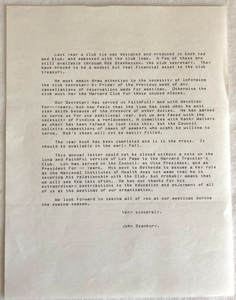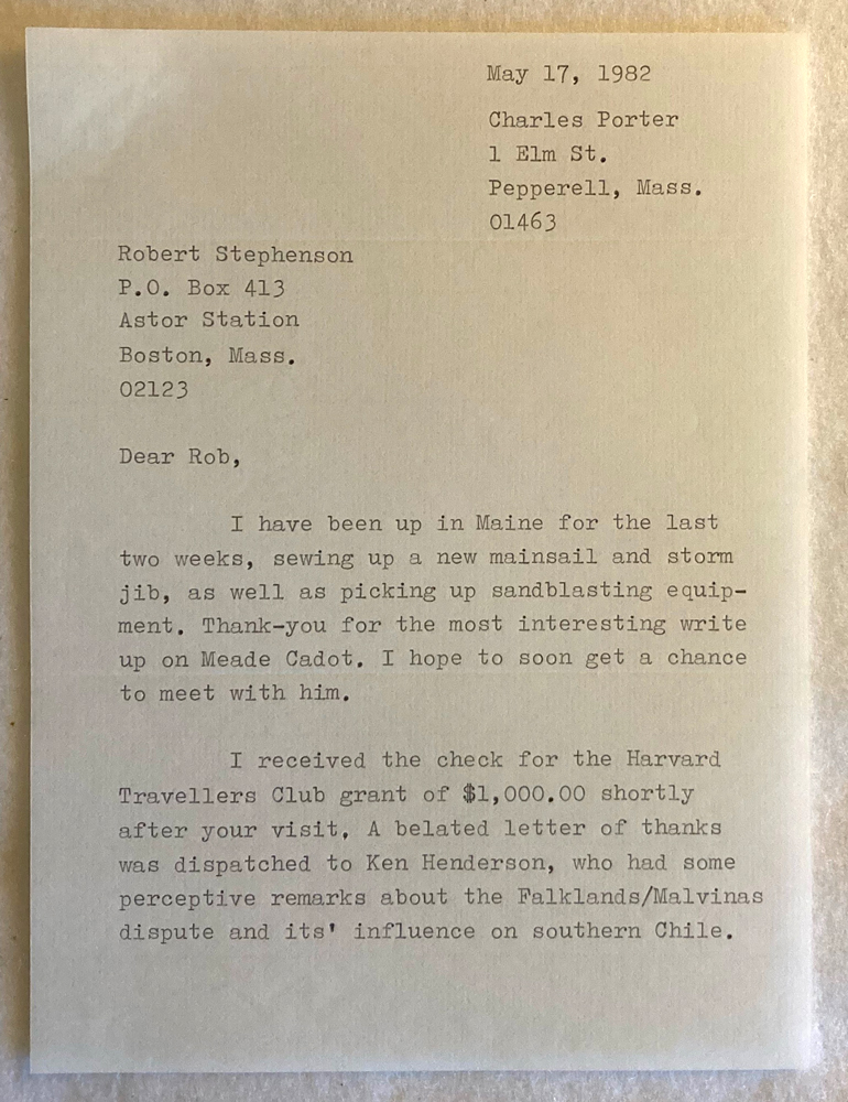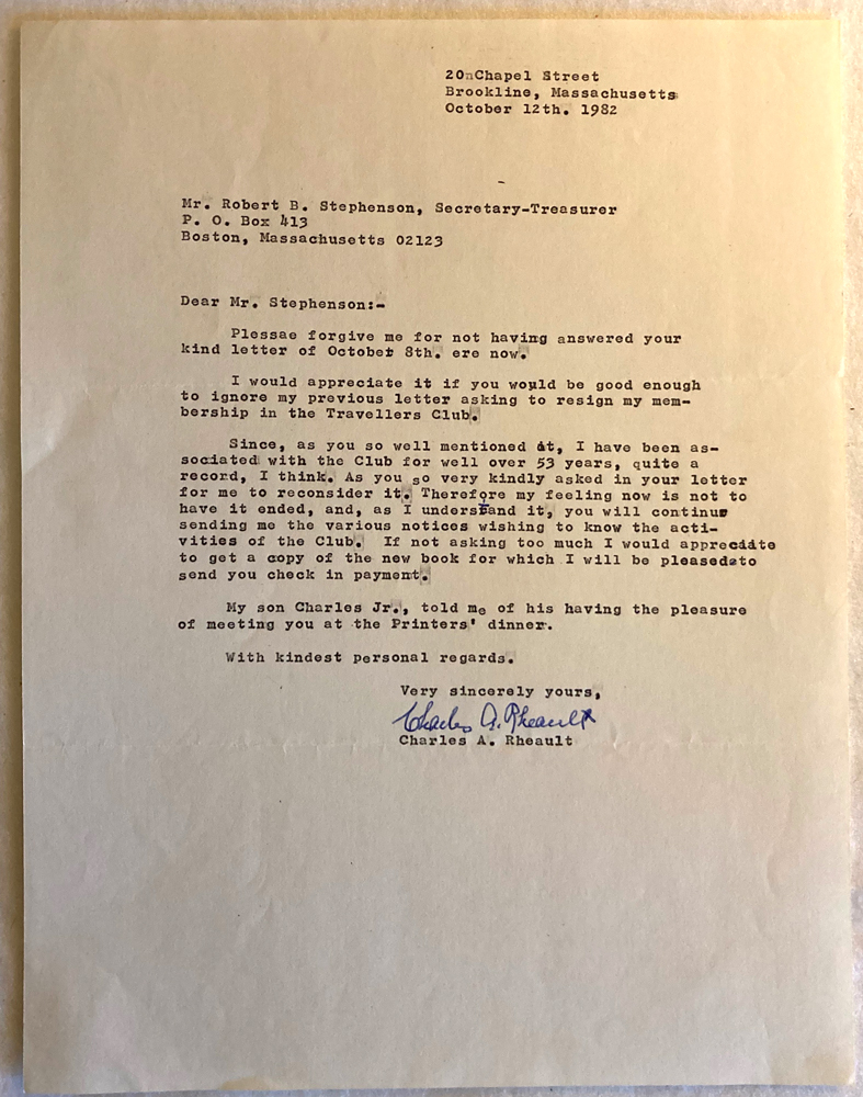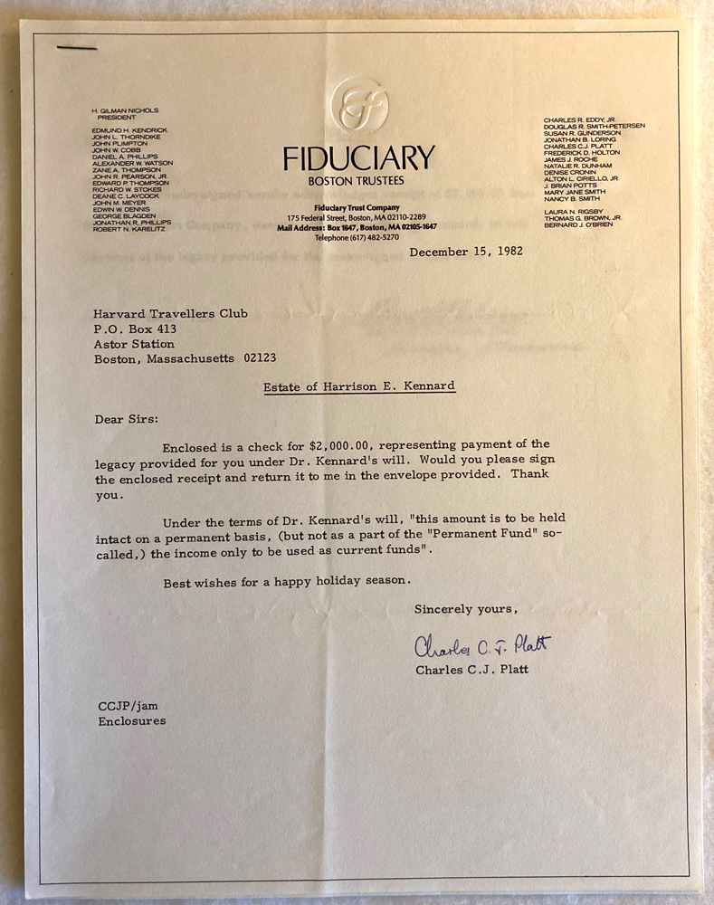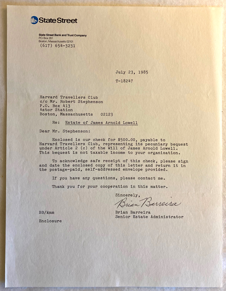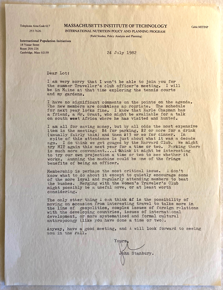 HARVARD TRAVELLERS CLUB ARCHIVES (Box 07, Folder 24) Mostly to or from Robert B. Stephenson, Secretary (1980-1986), later President.