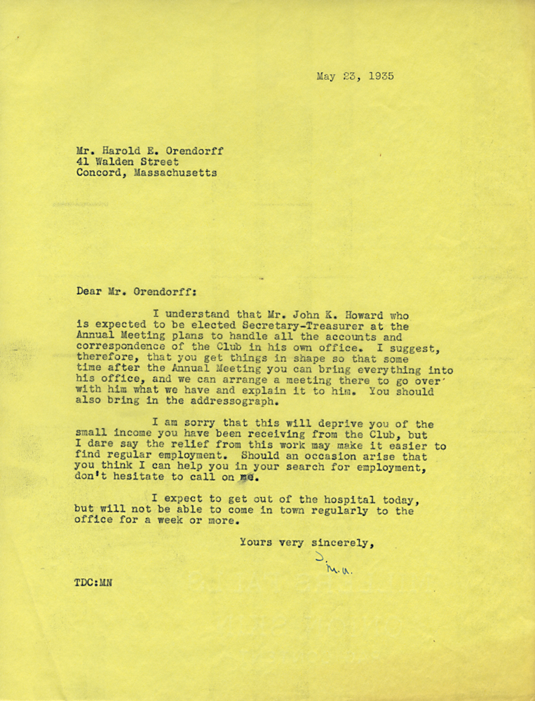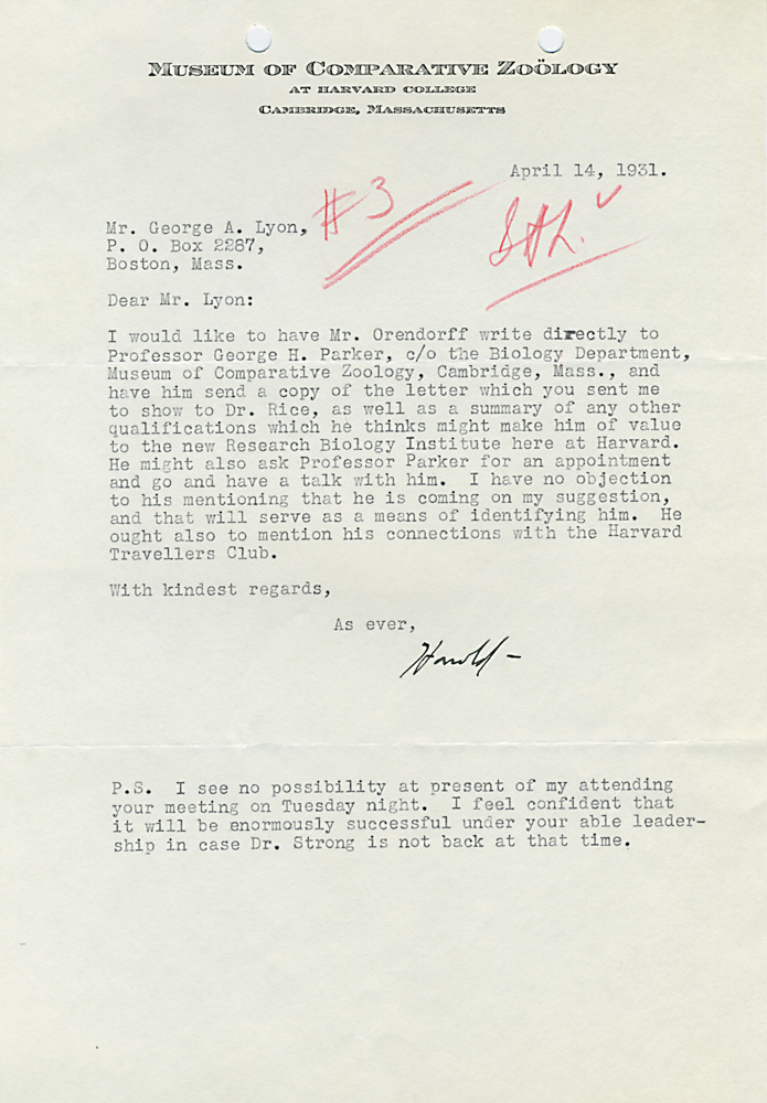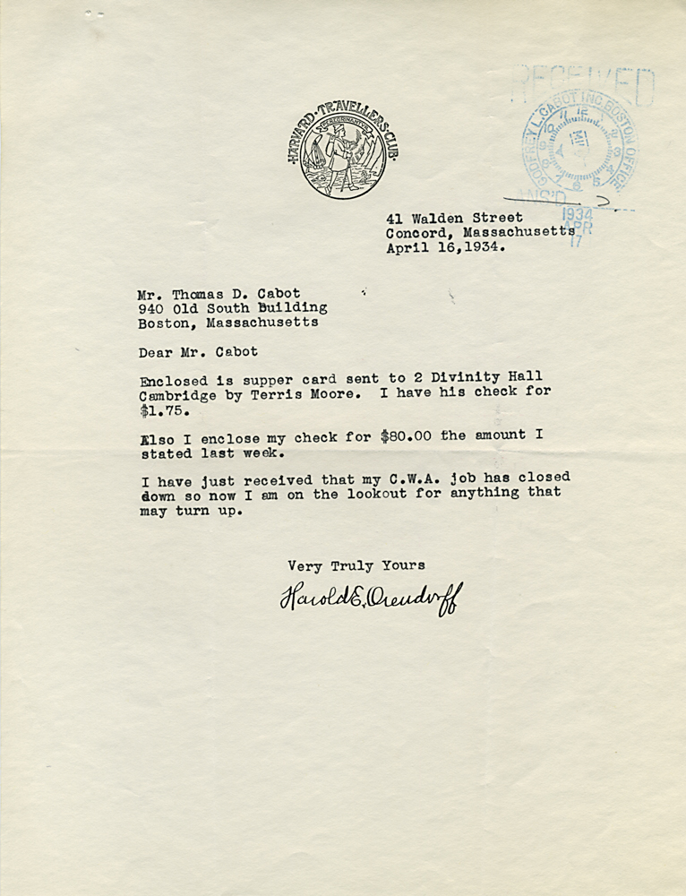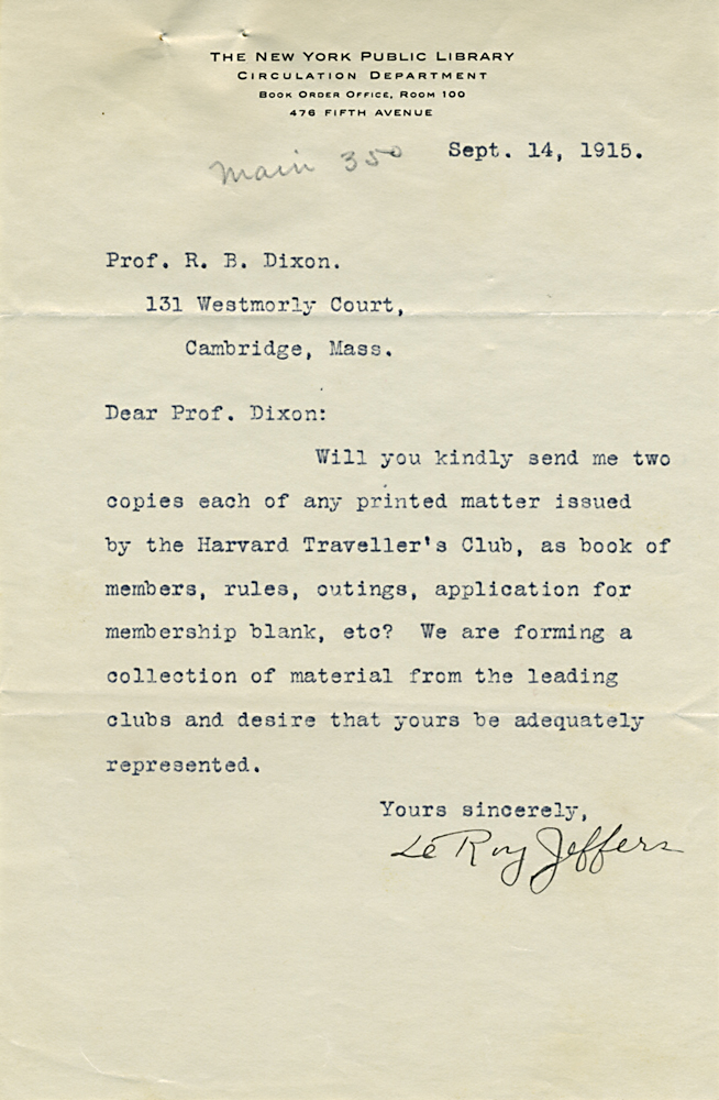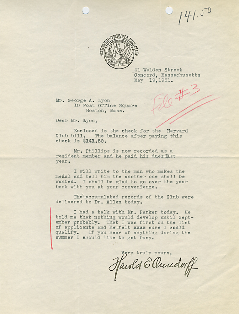 HARVARD TRAVELLERS CLUB ARCHIVES (Box 07, Folder 03) Mostly to or from Harold E. Orendorff, paid not elected Secretary, 1913-1917 and 1930-1935.