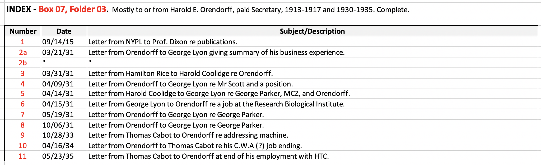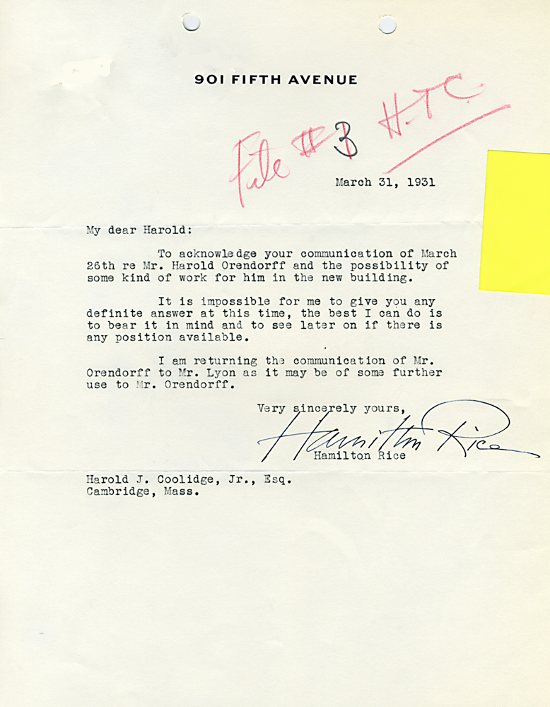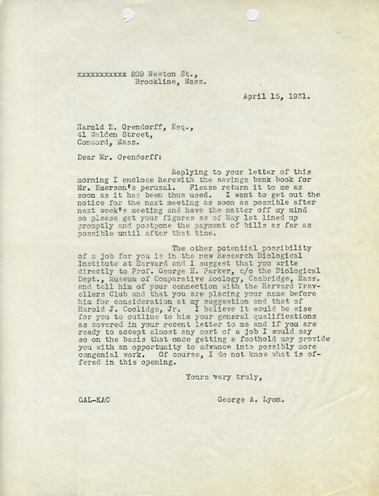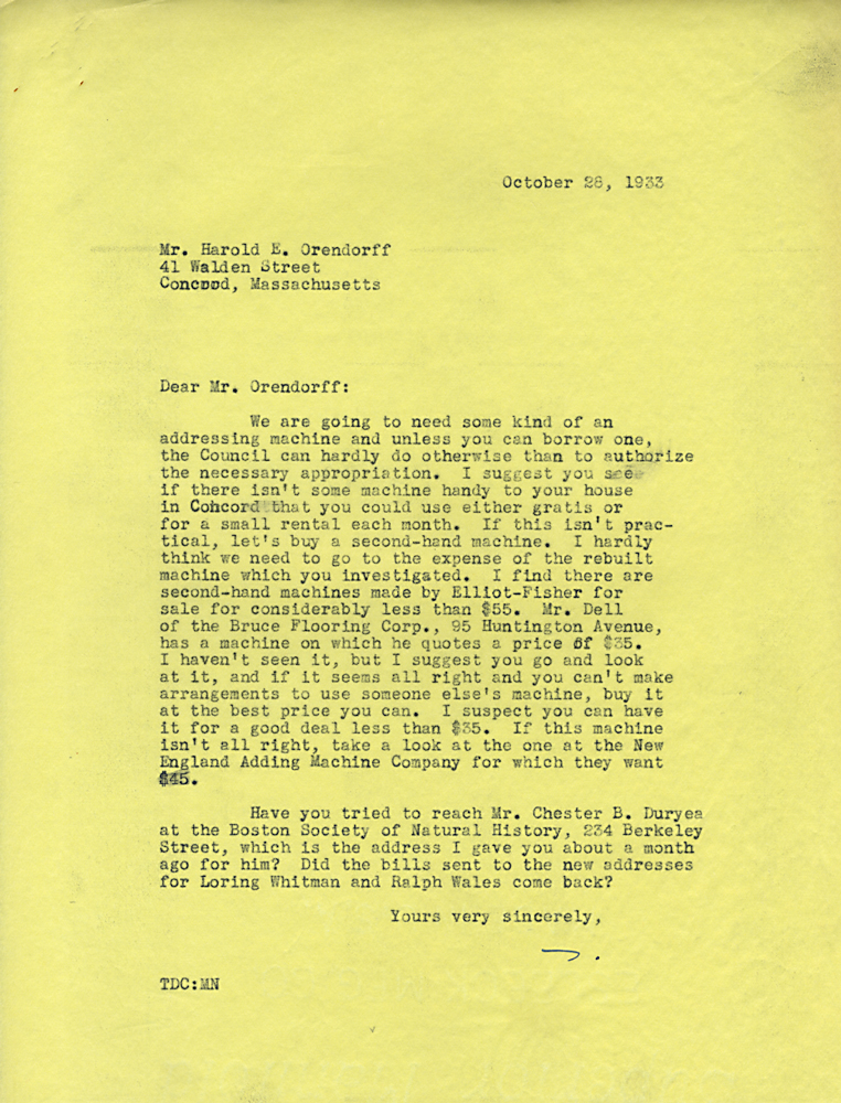 HARVARD TRAVELLERS CLUB ARCHIVES (Box 07, Folder 03) Mostly to or from Harold E. Orendorff, paid not elected Secretary, 1913-1917 and 1930-1935.