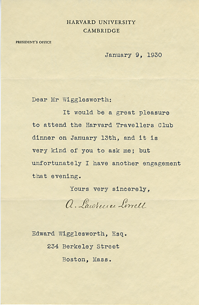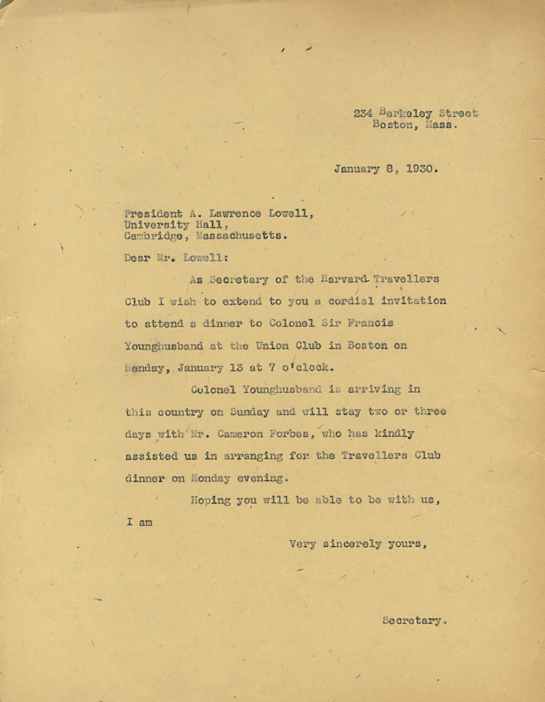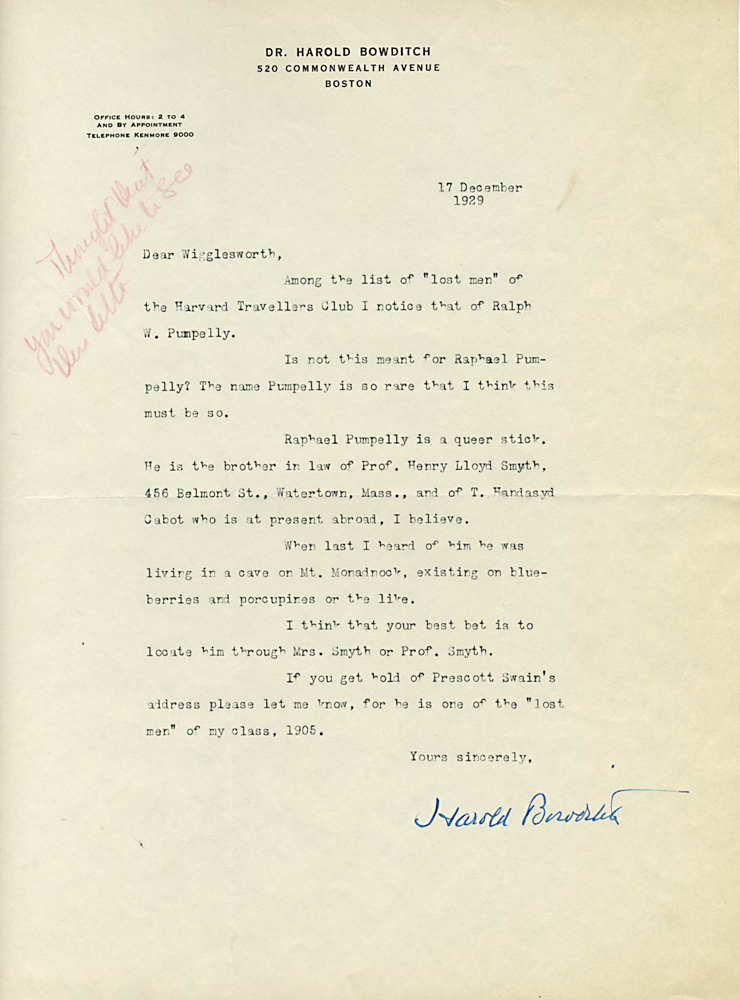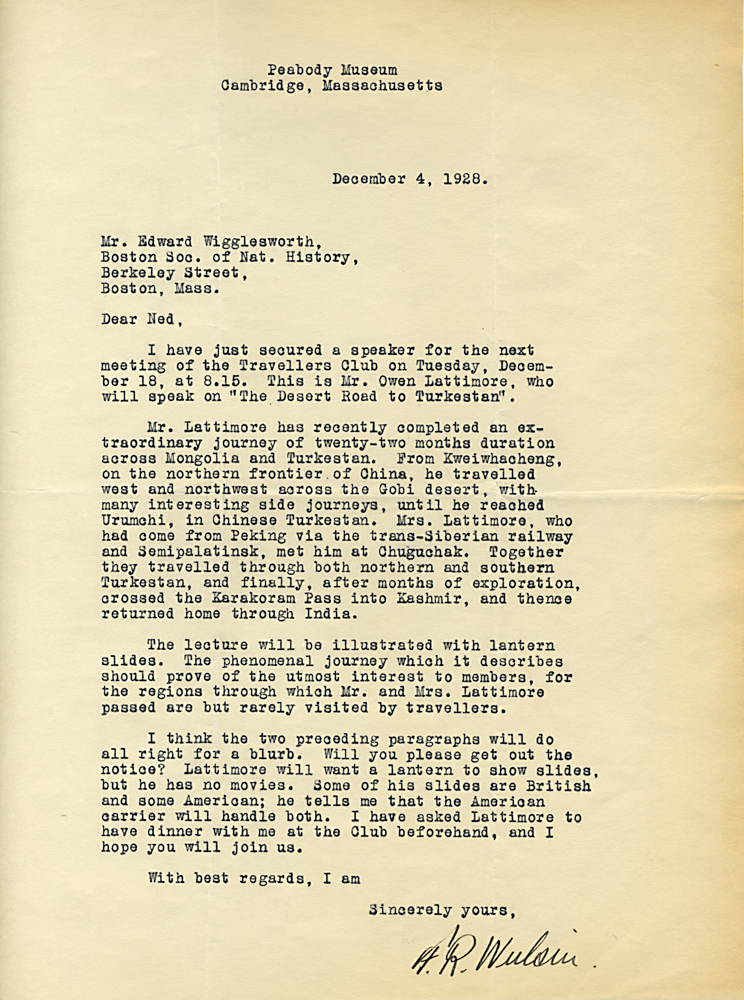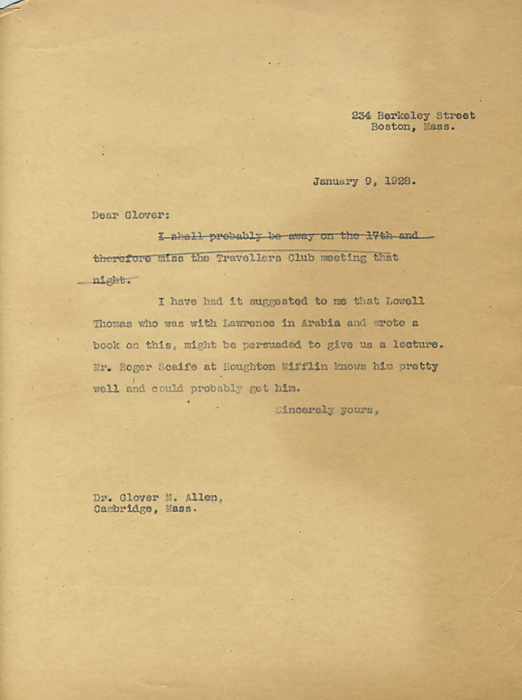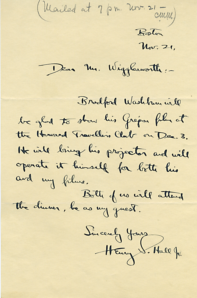 HARVARD TRAVELLERS CLUB ARCHIVES (Box 07, Folder 04) Mostly to or from Edward Wigglesworth, Secretary (1923-1930), 1928, 1929, 1930.