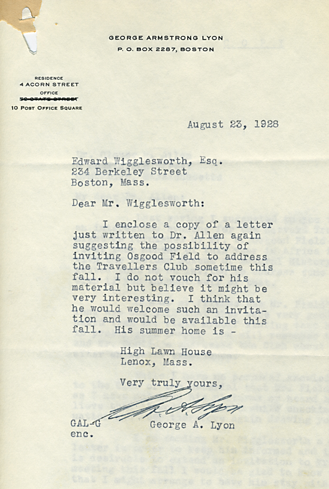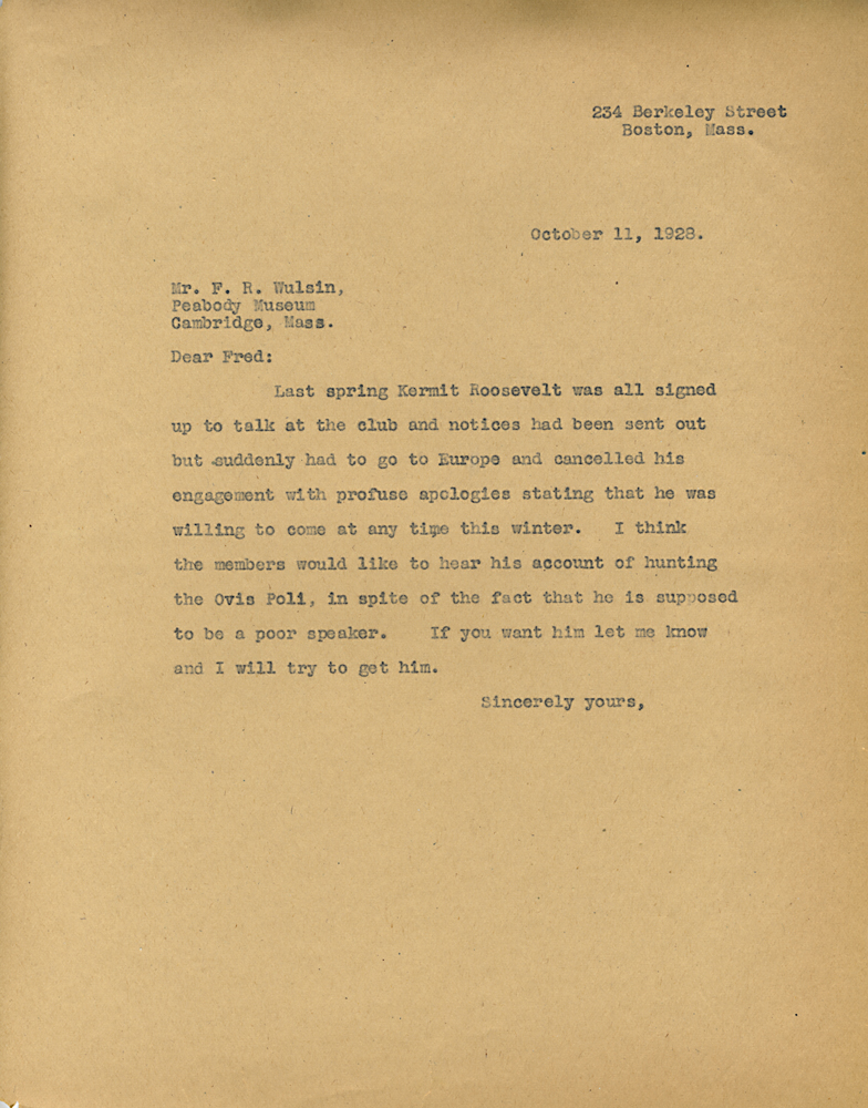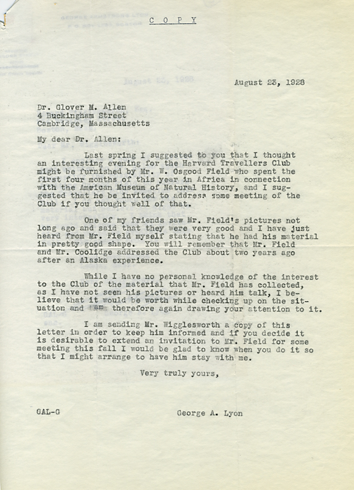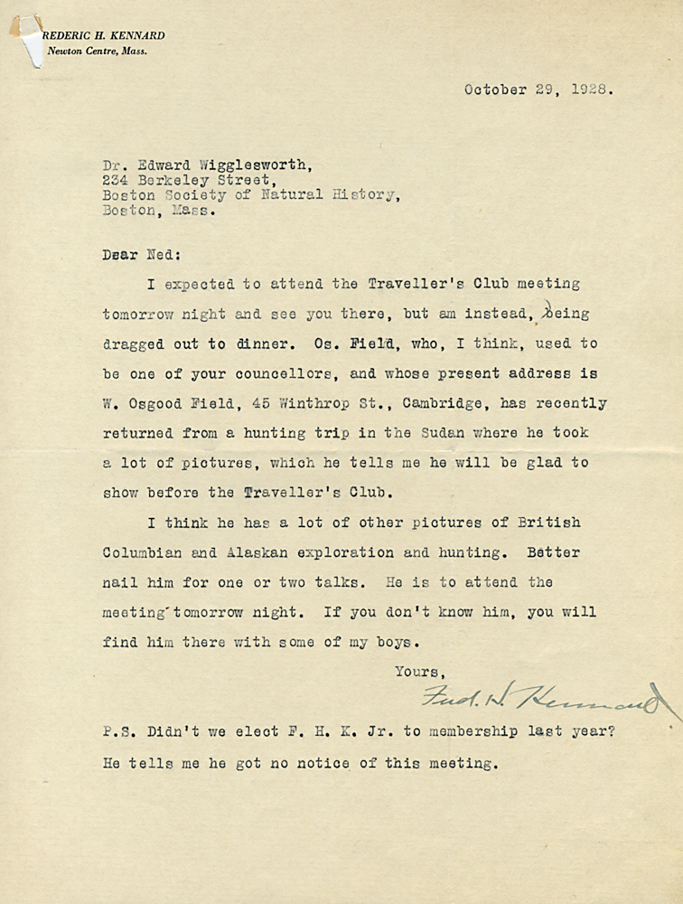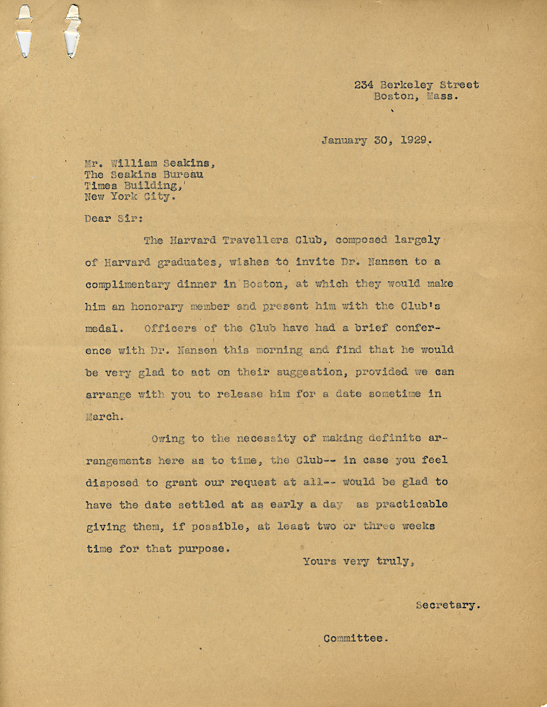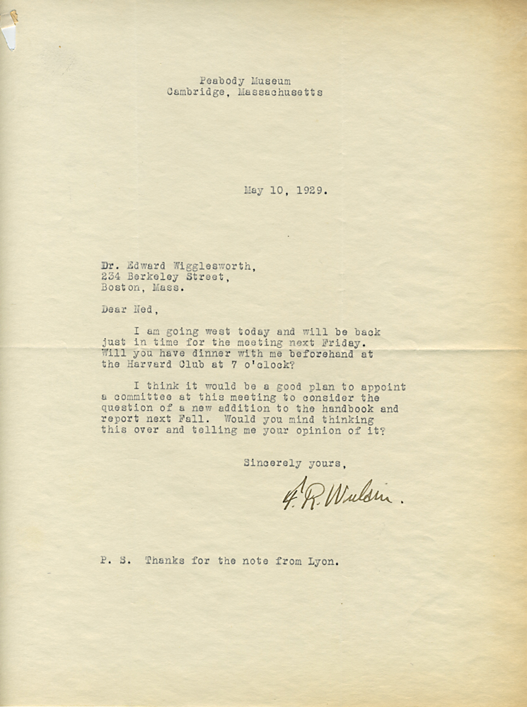 HARVARD TRAVELLERS CLUB ARCHIVES (Box 07, Folder 04) Mostly to or from Edward Wigglesworth, Secretary (1923-1930), 1928, 1929, 1930.