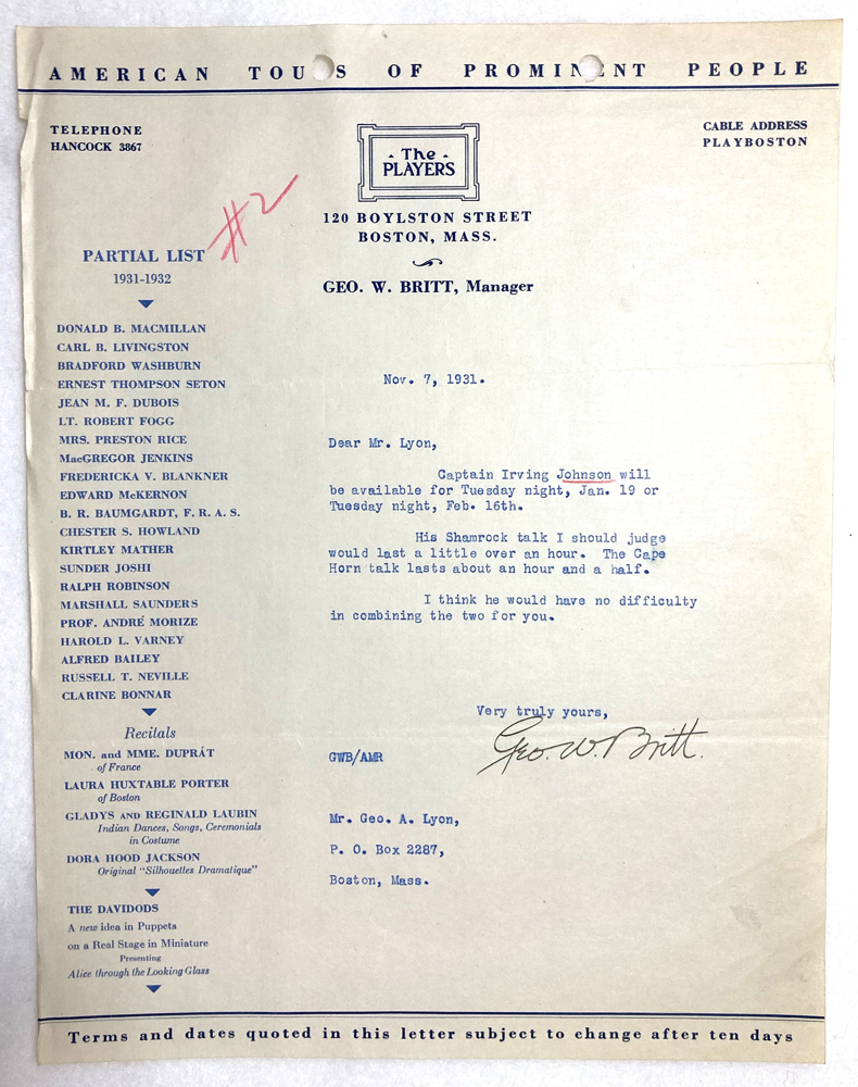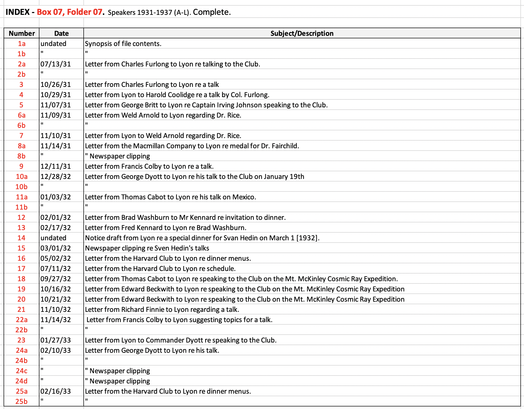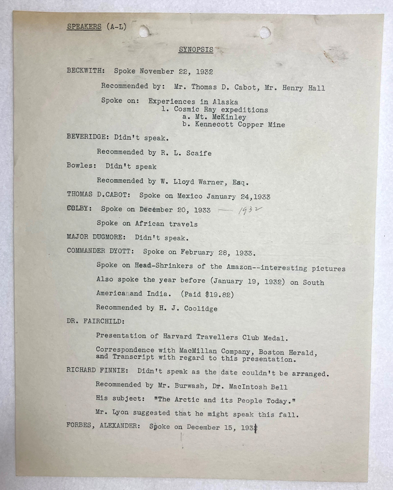 (Box 07, Folder 07) Speakers 1931-1937 (A-L).