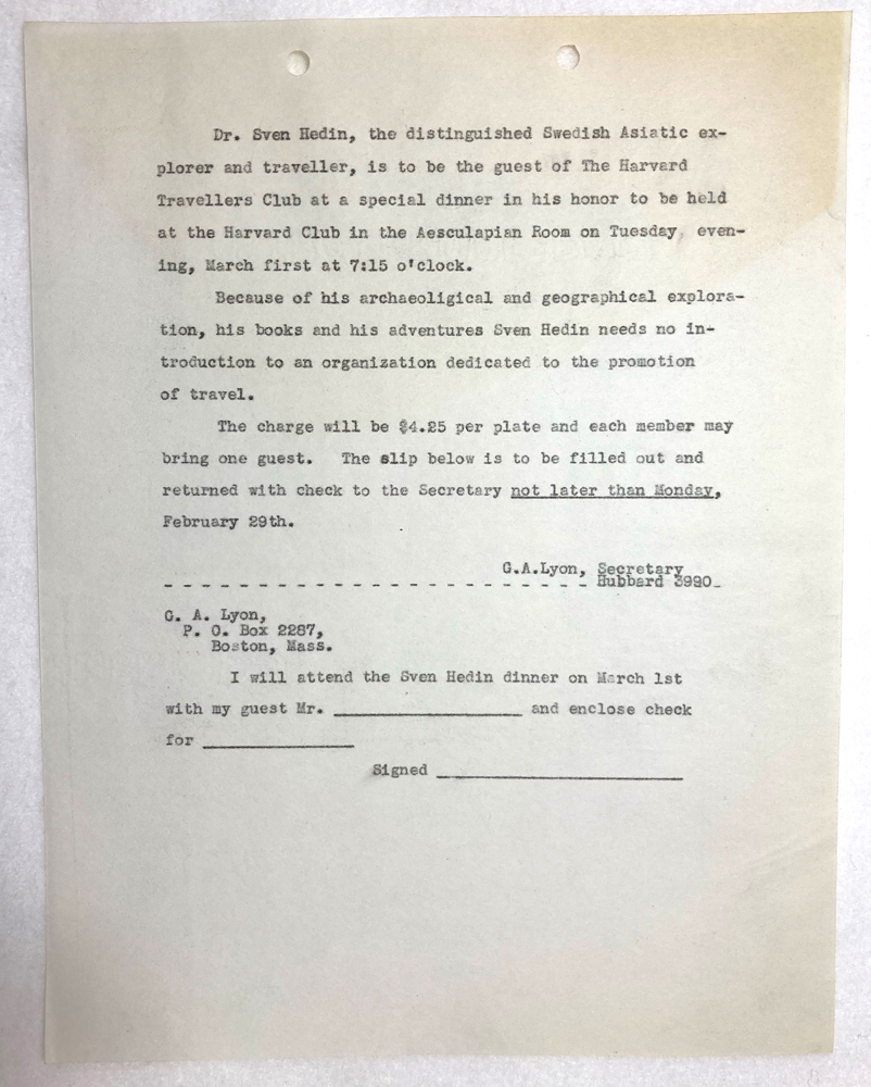 HARVARD TRAVELLERS CLUB ARCHIVES