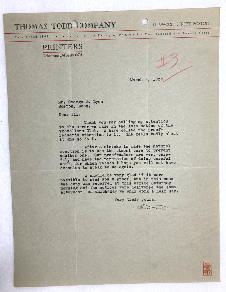 (Box 07, Folder 08) Harvard Travellers Club No. 3. 1931-1933.