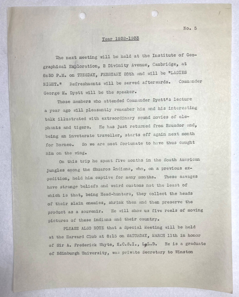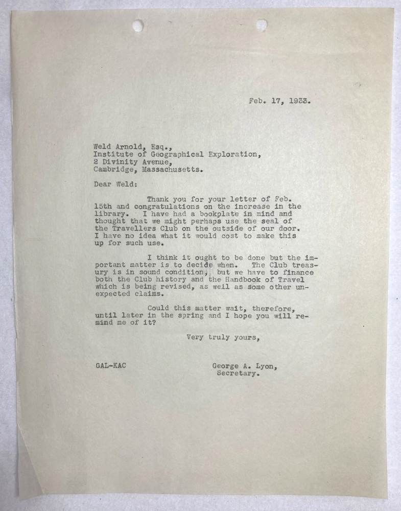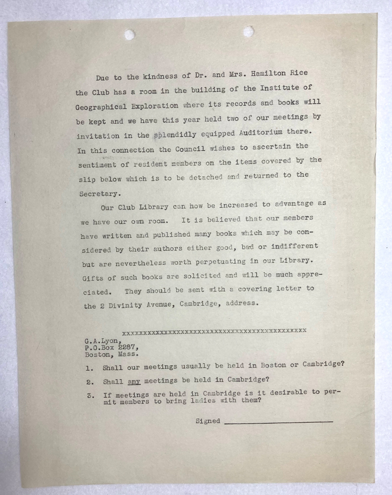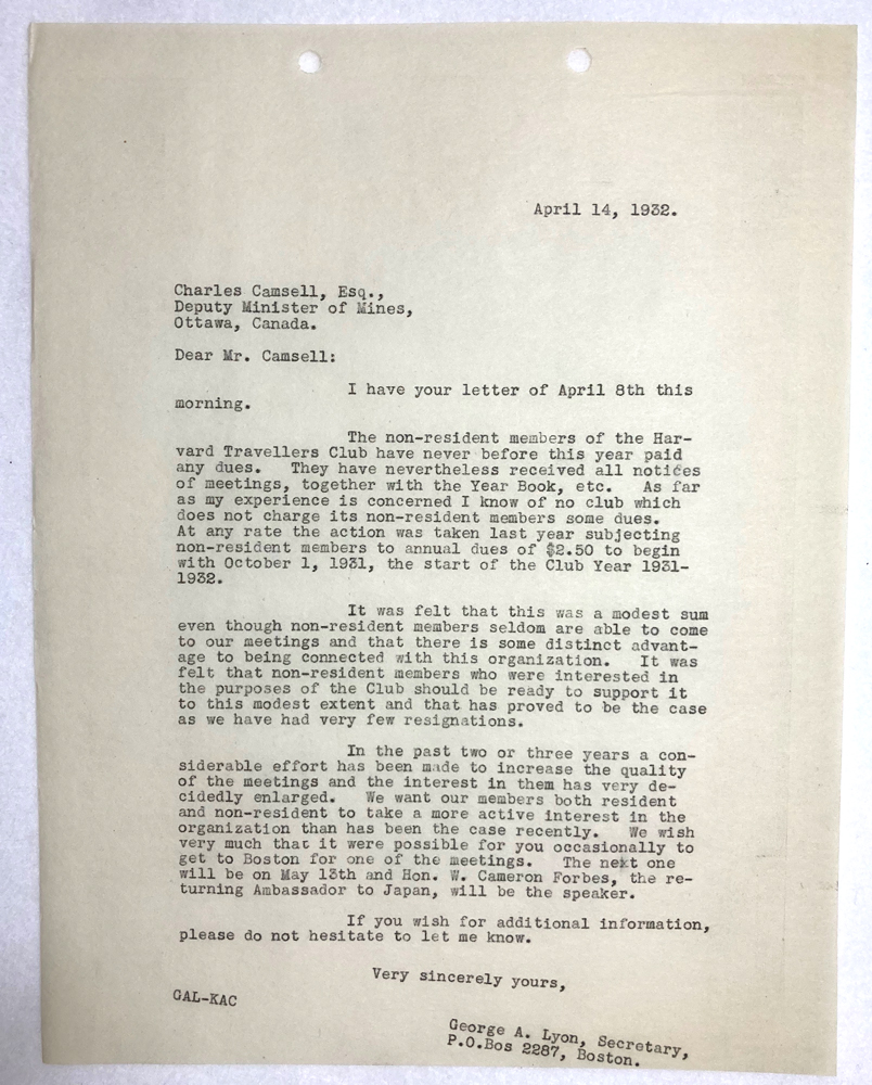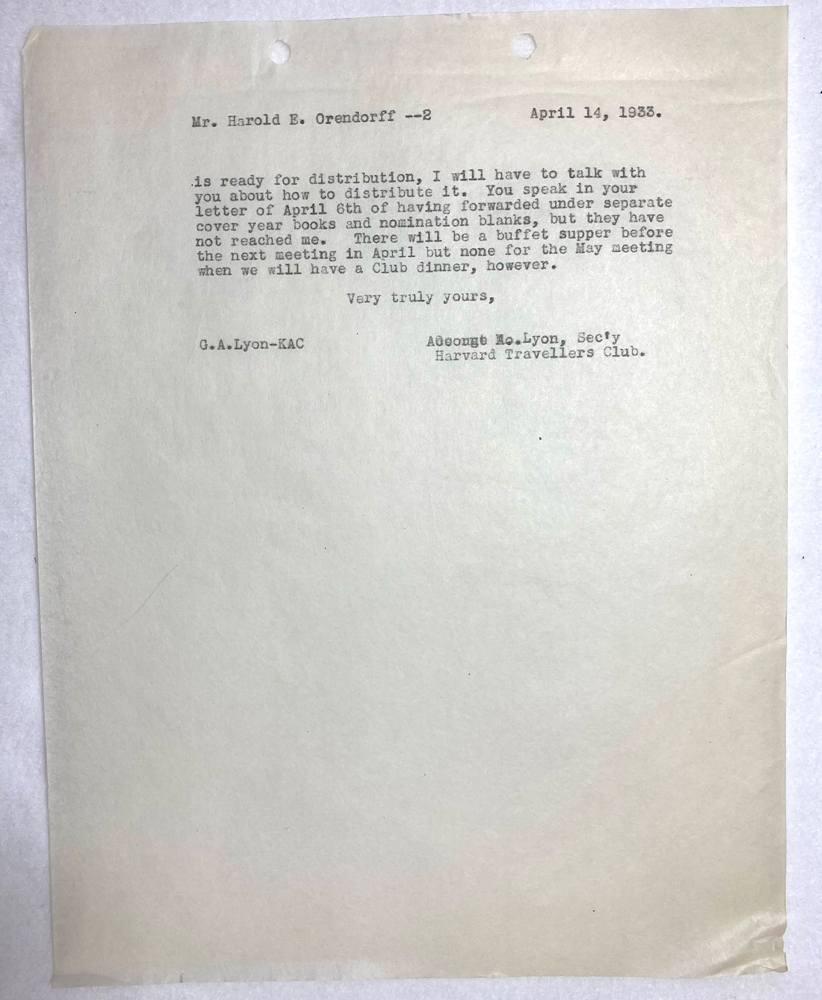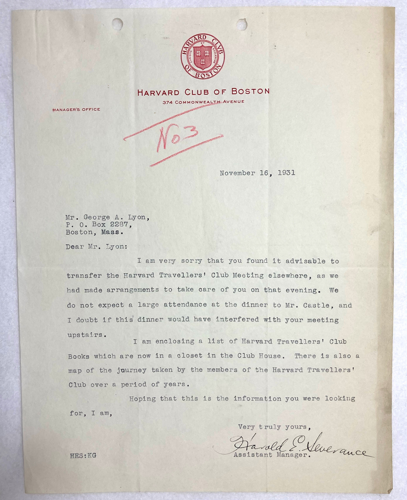 HARVARD TRAVELLERS CLUB ARCHIVES
