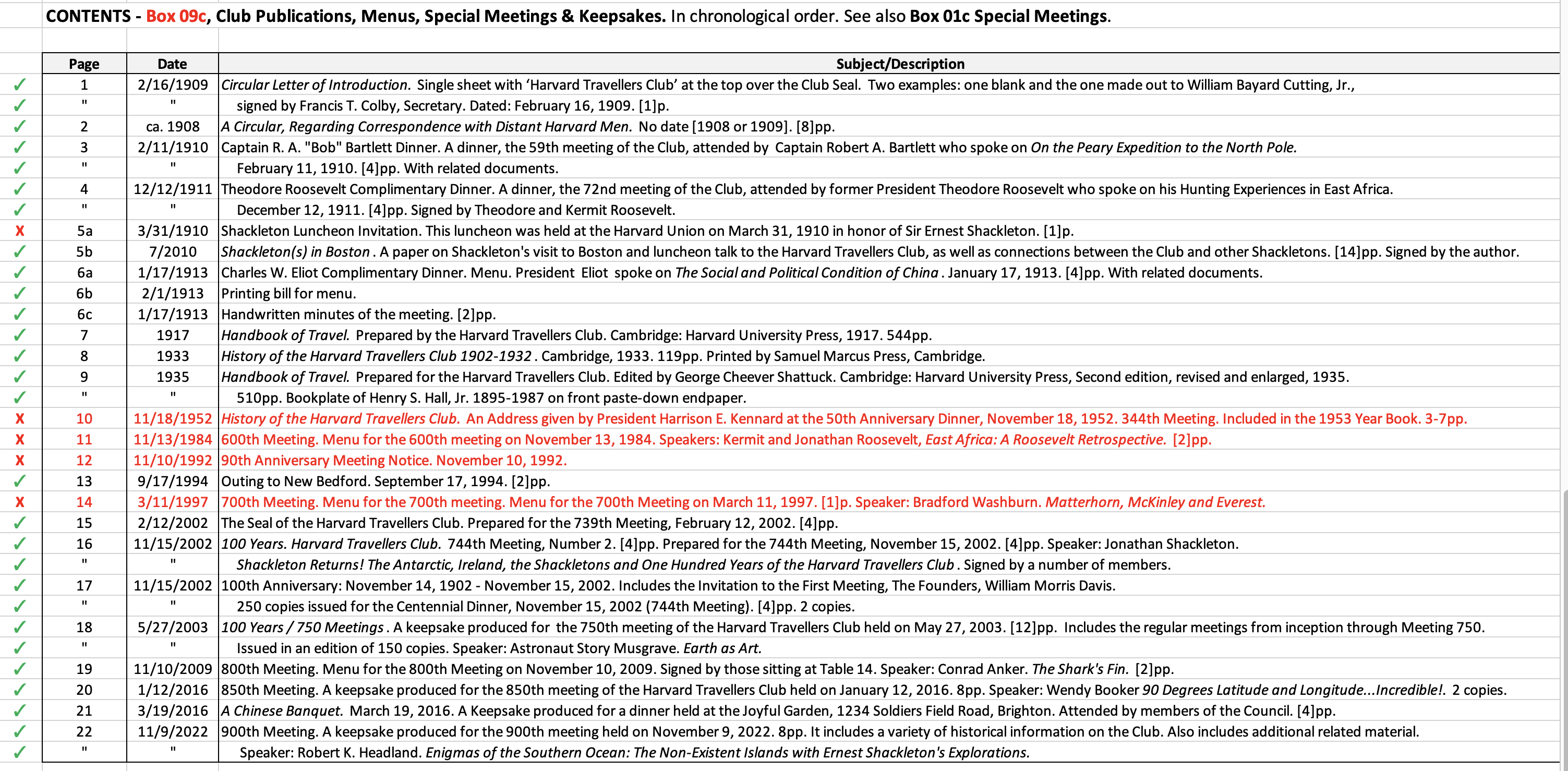 ✔ 22. 900th Meeting. A keepsake produced for the 900th meeting of the Harvard Travellers Club held on November 9, 2022. 8pp. It includes a variety of historical information on the Club. 2 copies. Speaker: Robert K. Headland. Enigmas of the Southern Ocean: The Non-Existent Islands with Ernest Shackleton's Explorations.