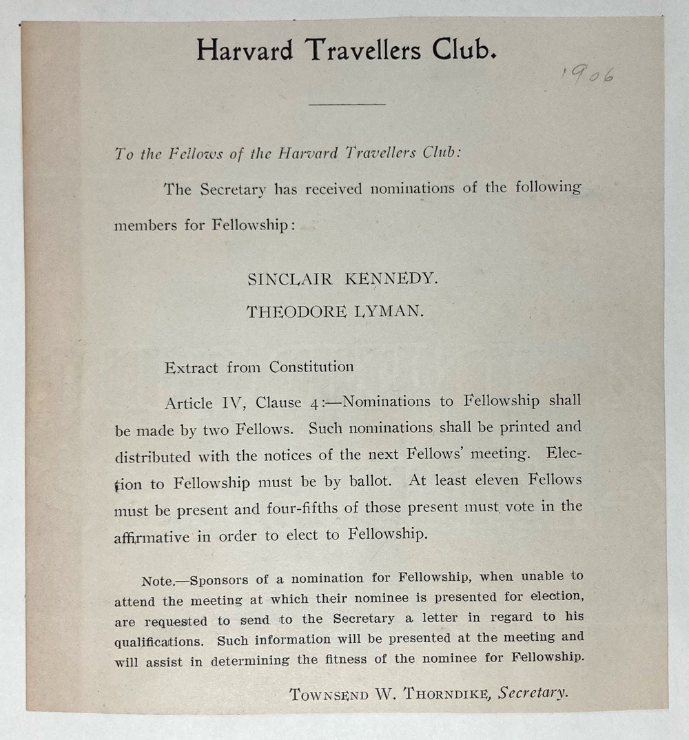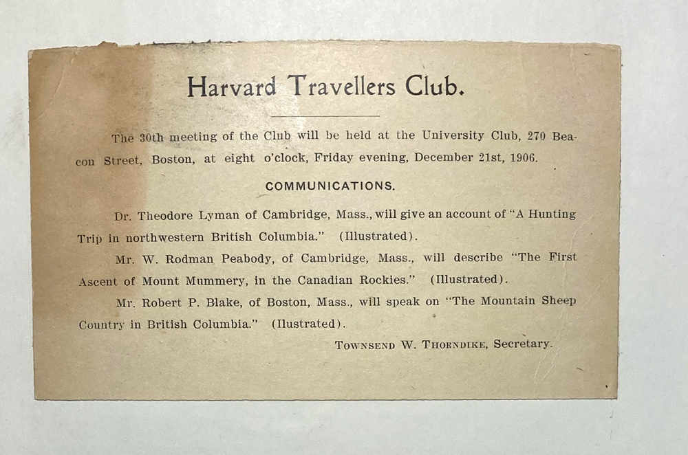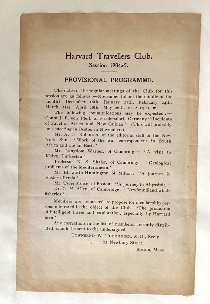 HARVARD TRAVELLERS CLUB ARCHIVES