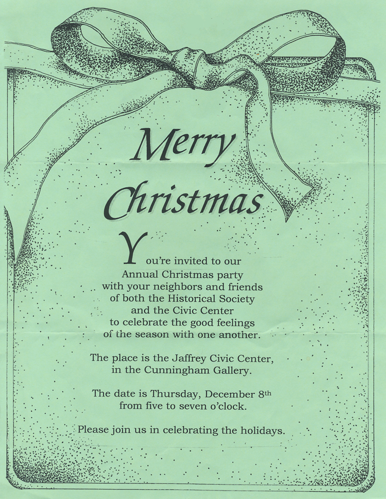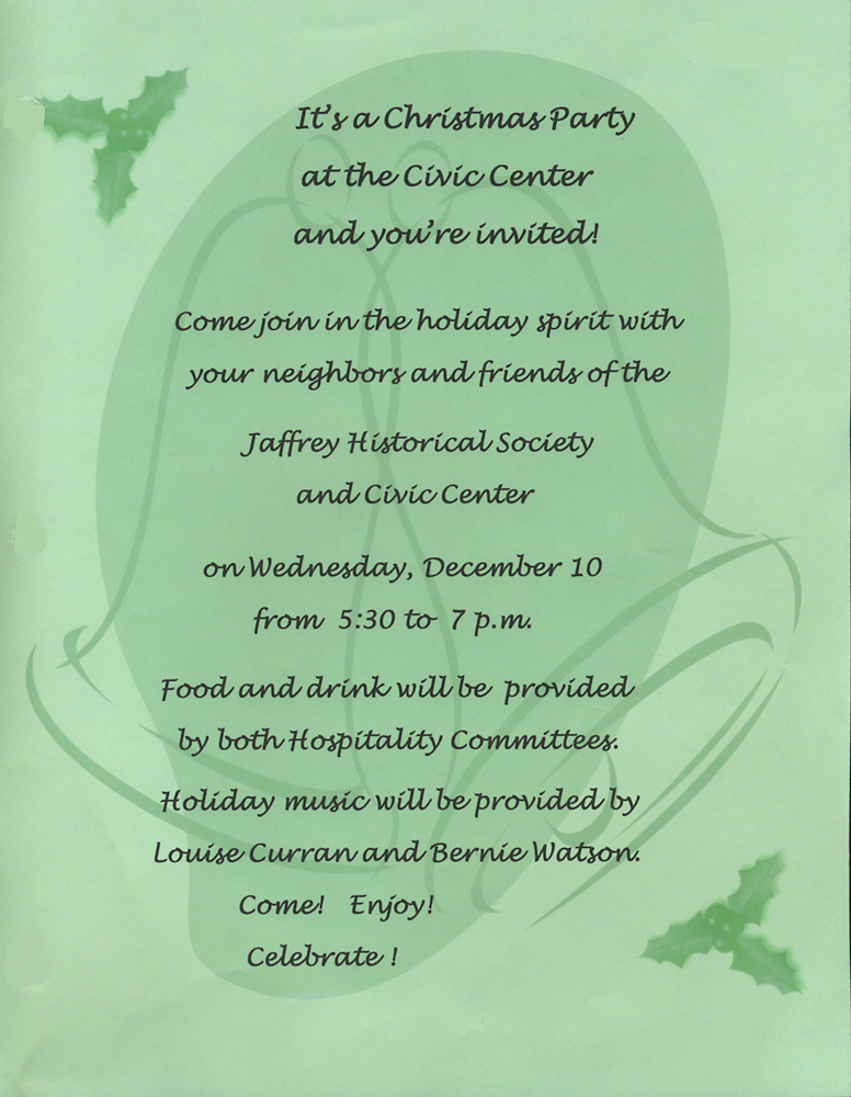 Christmas Party. Thursday, December 12, 2019, Jaffrey Civic Center.