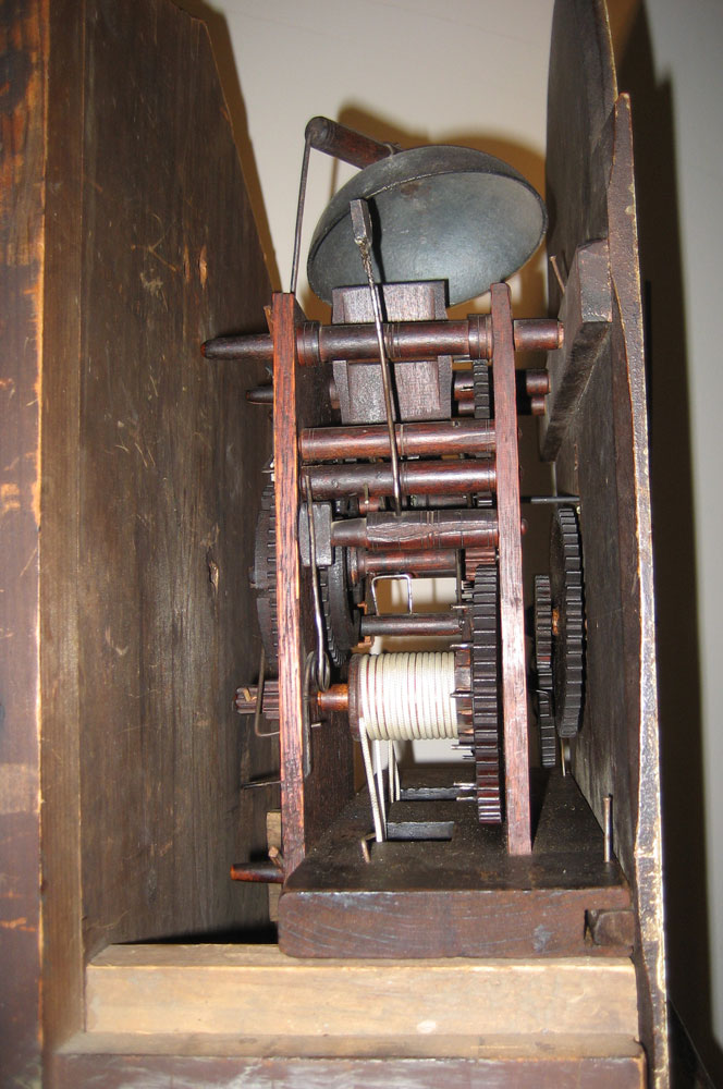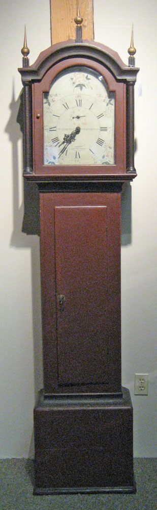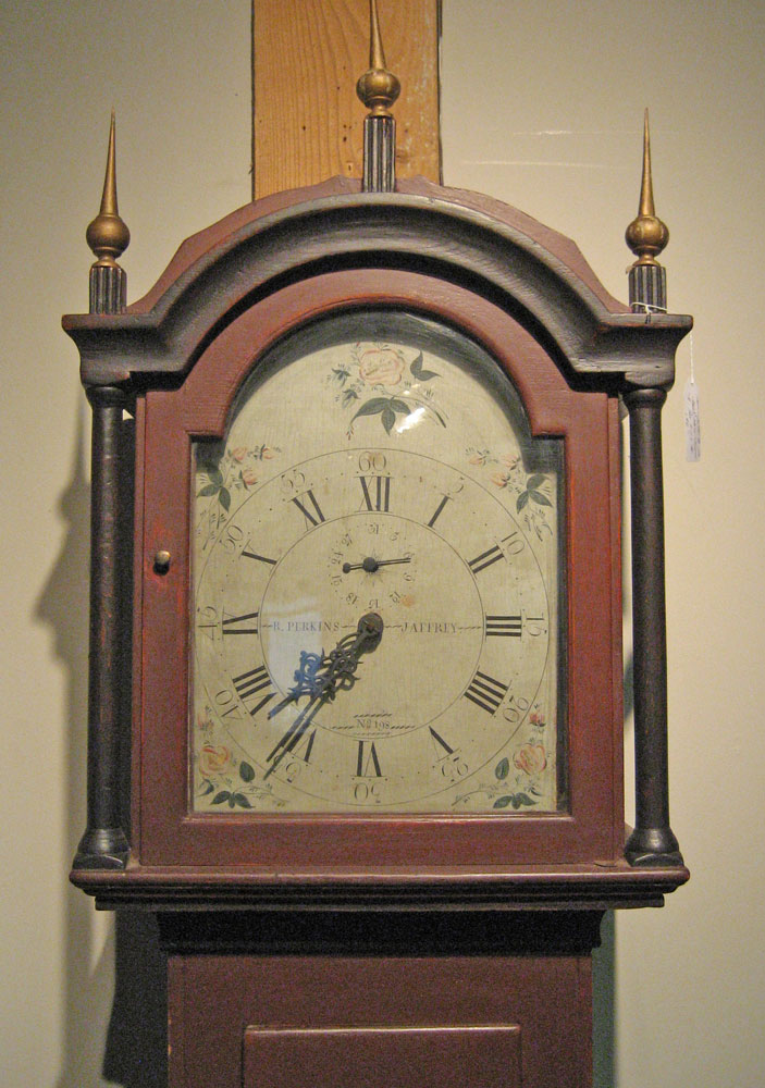 This clock—made in Jaffrey by Robinson Perkins—was purchased by the Jaffrey Historical Society at an auction sale at The Cobbs, Peterborough, New Hampshire, on October 20, 2012. Total price: $2,185.